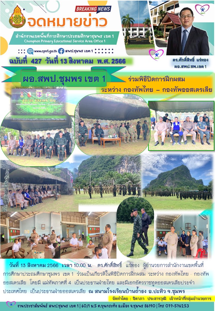 ผอ.เขตพื้นที่ฯร่วมพิธีปิดการฝึกผสมฯ (บ้านถ้ำธง