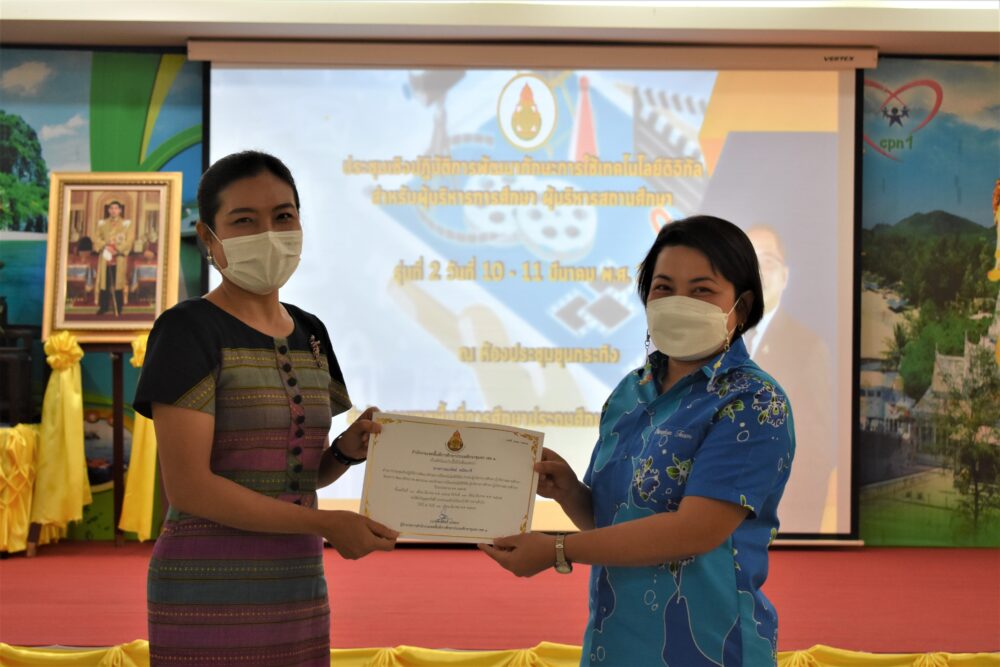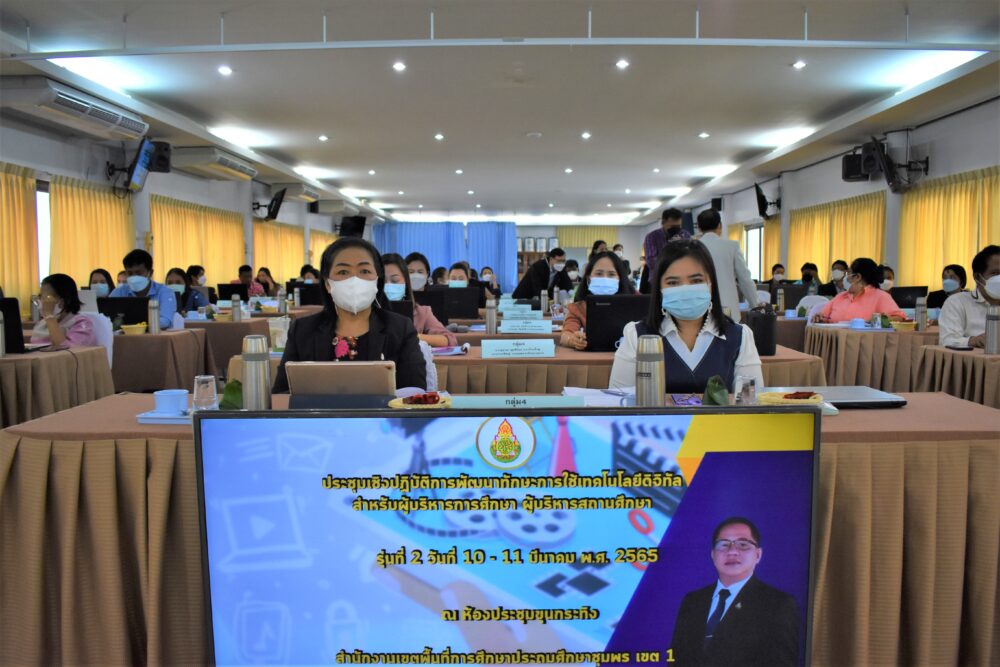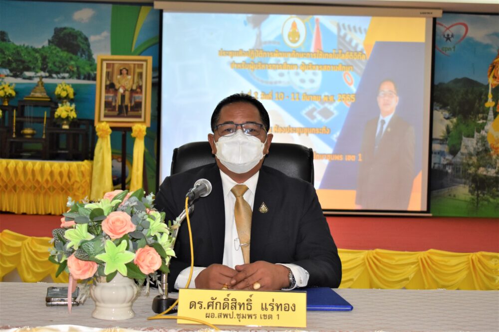 วันที่ 10 มีนาคม พ.ศ. 2565 เวลา 09.00 น. ณ ห้องประชุมขุนกระทิง 1 ชั้น 3 นายศักดิ์สิทธิ์ แร่ทอง ผอ.สพป.ชุมพร เขต 1 เป็นประธานพิธีเปิดพร้อมบรรยายพิเศษ โครงการพัฒนาทักษะการใช้เทคโนโลยีดิจิทัล สำผู้บริหารการศึกษา ผู้บริหารสถานศึกษา ประจำปีงบประมาณ พ.ศ.2565 การจัดโครงการในครั้งนี้ มีวัตถุประสงค์เพื่อให้ผู้เข้าร่วมประชุม มีความรู้ ความเข้าใจ และมีทักษะในการใช้เทคโนโลยีดิจิทัล สามารถนำทักษะความรู้ ไปใช้ในการบริหารงานการจัดการศึกษา ตลอดจนนำไปขยายผลให้กับบุคลากรในโรงเรียนต่อไป ซึ่งการจัดโครงการแบ่งจัดเป็น 2 รุ่นๆละ 2 วัน จำนวนผู้เข้าร่วมประชุม รุ่นละ 60 คน รวมทั้งสิ้น 120 คน และการประชุมในวันนี้เป็นรุ่นที่ 2 โดยได้รับความร่วมมือจากข้าราชการครูของโรงเรียนในสังกัด ที่มีความรู้ ความสามารถ และทักษะในเรื่องเทคโนโลยีดิจิทัล เป็นวิทยากรให้ความรู้กับผู้เข้าร่วมประชุมในครั้งนี้.- และได้มอบหมายให้ นางกันยมาส ชูจีน รอง ผอ.สพป.ชุมพร เขต 1 เป็นประธานในพิธีปิดการประชุม พร้อมมอบเกียรติบัตรให้กับผู้เข้าร่วมประชุมโครงการพัฒนาทักษะการใช้เทคโนโลยีดิจิทัล สำผู้บริหารการศึกษา ผู้บริหารสถานศึกษา ประจำปีงบประมาณ พ.ศ.2565 ในรุ่นที่ 2
