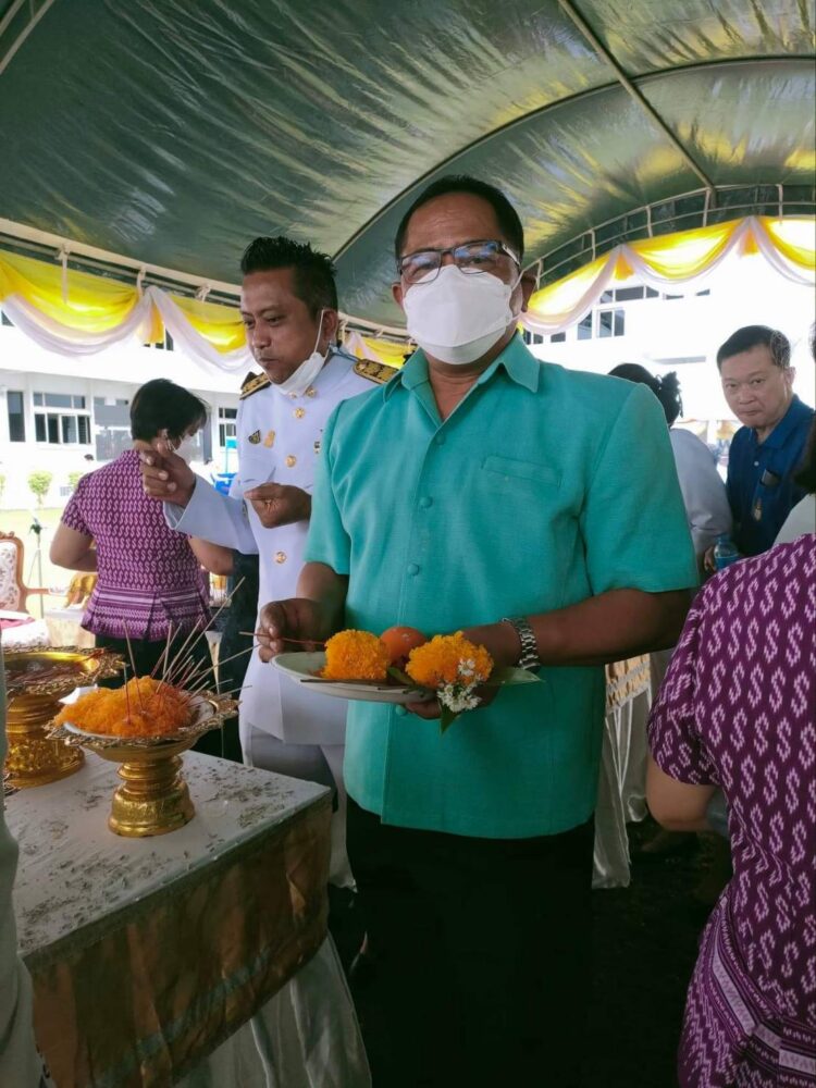ดร.ศักดิ์สิทธิ์ แร่ทอง ผู้อำนวยการสำนักงานเขตพื้นที่การศึกษาประถมศึกษาชุมพร เขต 1 ร่วมพิธีบวงสรวงเสาหลักเมืองชุมพรจำลอง
