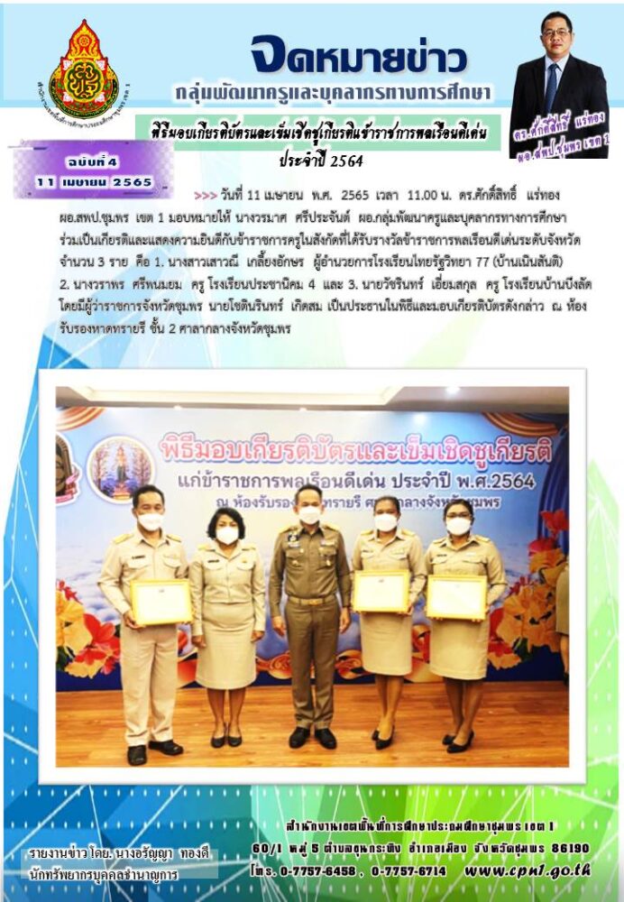 จดหมายข่าว กลุ่มพัฒนาครูฯ ฉบับที่ 4 พิธีมอบเกียรติบัตรและเข็มเชิดชูเกียรติข้าราชการพลเรือนดีเด่น ประจำปี 2564 11 เมษายน 256501 กรกฎาคม 2022 กลุ่มพัฒนาครูและบุคลากรทางการศึกษา สพป.ชพ.1 การดำเนินงานตามนโนบายการบริหารทรัพยากรบุคคล, ข่าวและกิจกรรมกลุ่มพัฒนาครูและบุคลากรทางการศึกษา, งานยกย่องเชิดชูเกียรติ/คัดเลือกรางวัล, ไม่มีหมวดหมู่ FacebookFacebookXXLINELine กลุ่มพัฒนาครูและบุคลากรทางการศึกษา สพป.ชพ.1