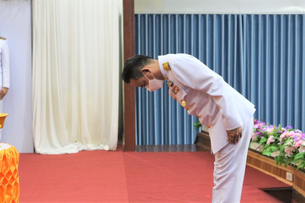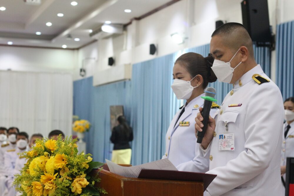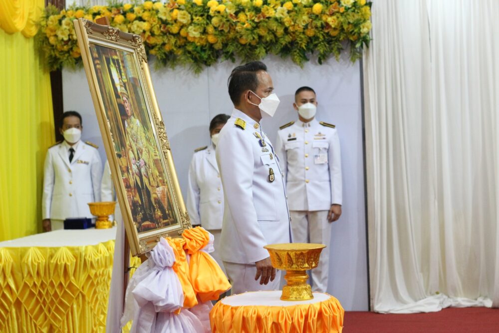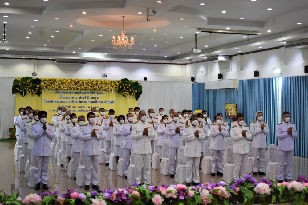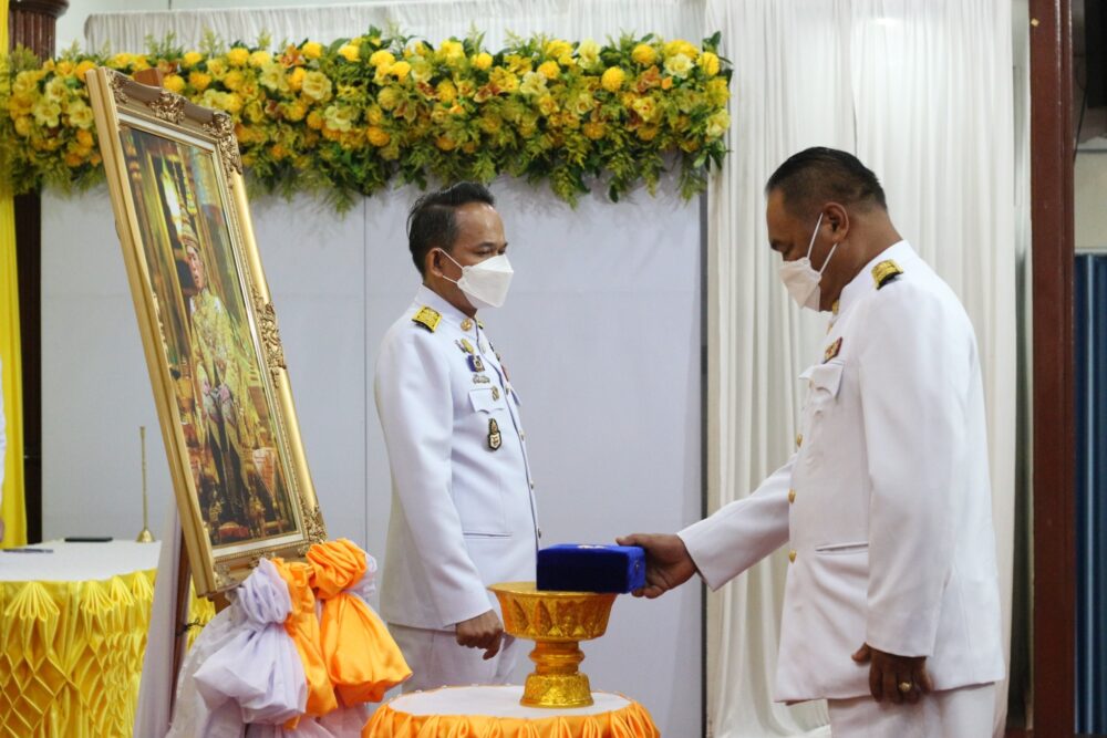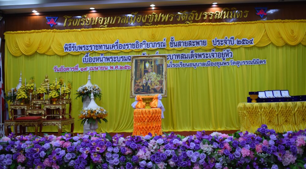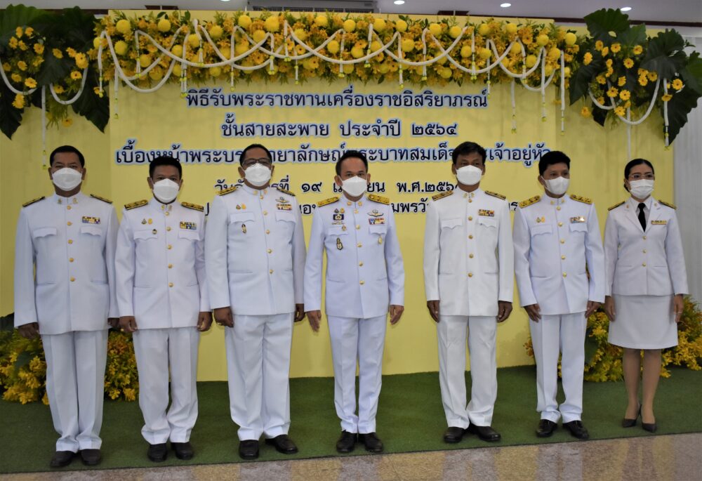 สพป.ชุมพร เขต 1 จัดพิธีรับพระราชทานเครื่องราชอิสริยาภรณ์ ชั้นสายสะพาย ประจำปี ๒๕๖๔ เบื้องหน้าพระบรมฉายาลักษณ์พระบาทสมเด็จพระเจ้าอยู่หัว
