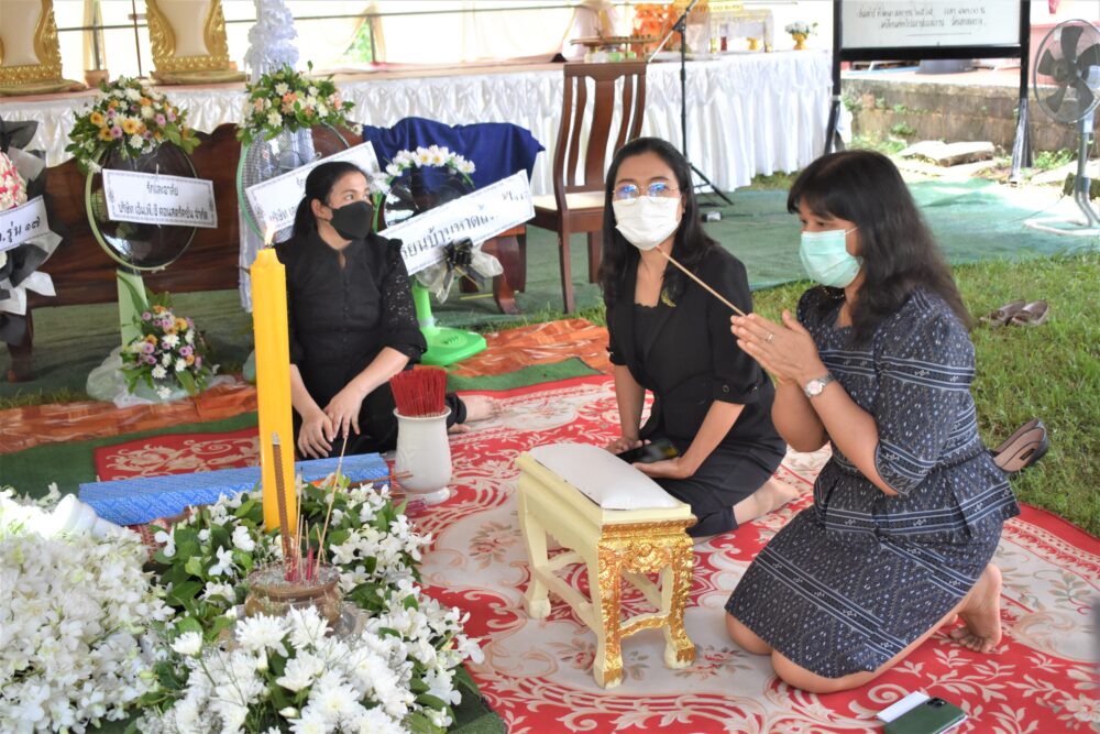 วางหรีดเคารพศพนายศิริพงษ์ ศรฉัตร บิดาของ น.ส.ปภาดา ศิริศรีฉัตรา ครูโรงเรียนบ้านหาดส้มแป้น