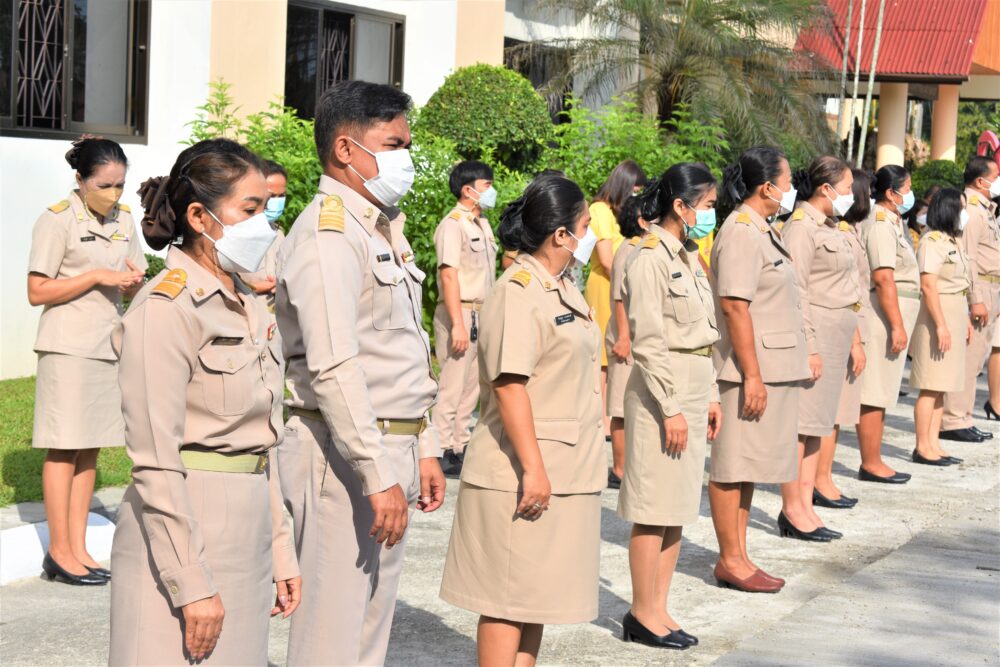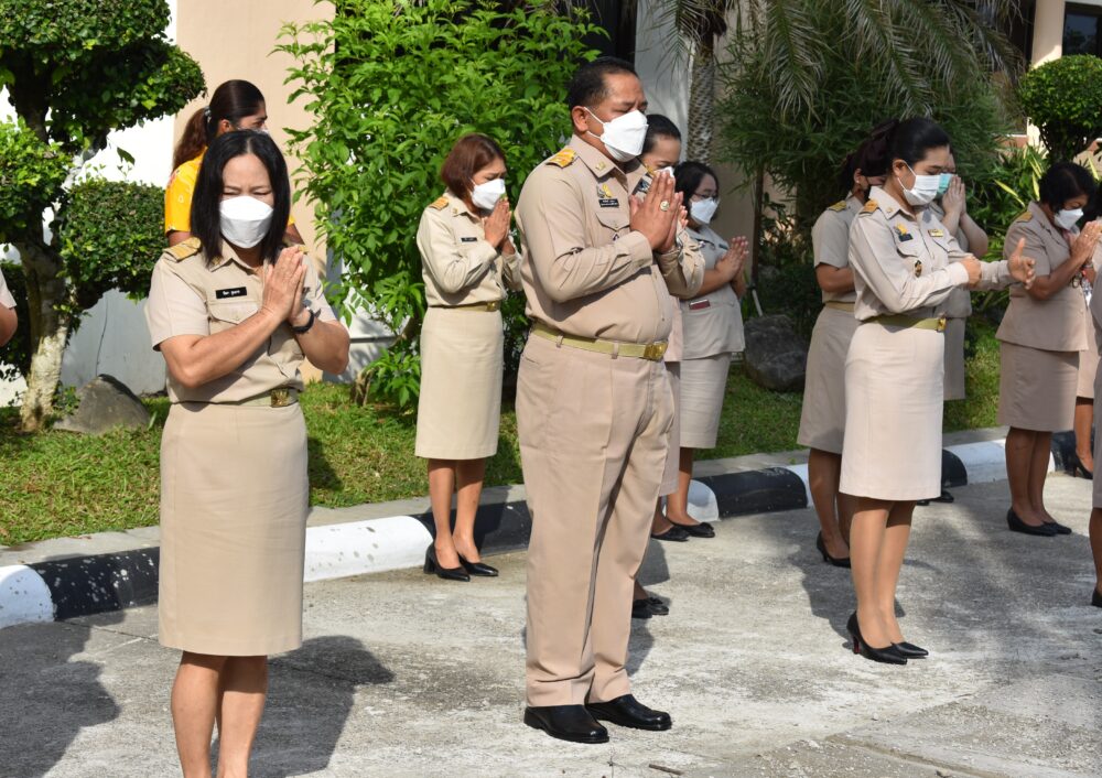 วันจันทร์ที่ 2 พฤษภาคม 2565 เวลา 08.30 น. ดร.ศักดิ์สิทธิ์ แร่ทอง ผอ.สพป.ชพ.1 นำผู้บริหารการศึกษา และบุคลากรในสพป.ชุมพร เขต 1 ร่วมกิจกรรมเข้าแถวเคารพธงชาติ ไหว้พระบูชาพระรัตนตรัย และกล่าวคำปฏิญญาเขตพื้นที่การศึกษาสุจริต เพื่อให้ทุกคนได้ตระหนักและเห็นคุณค่าของชาติ สร้างความรัก ความสามัคคีในหน่วยงาน สร้างวินัย รู้หน้าที่ มีความรับผิดชอบ ภายใต้คุณธรรมนำความรู้ อีกทั้ง เป็นการแสดงออกเชิงสัญลักษณ์ในการขับเคลื่อนโครงการเสริมสร้างคุณธรรมจริยธรรม และธรรมาภิบาลในเขตพื้นที่การศึกษา "ป้องกันการทุจริต" (เขตสุจริต) ในการนี้ ผอ.สพป.ชุมพร เขต 1 ได้พบปะพูดคุย แจ้งข้อราชการ ข่าวสารต่างๆ ตลอดจนภารกิจงานของสำนักงานเขตที่จะต้องดำเนินการในรอบสัปดาห์นี้ และให้เตรียมความพร้อมในภารกิจงานของแต่ละกลุ่มที่จะต้องดำเนินการต่อไป พร้อมได้ขอบคุณและให้กำลังใจกับบุคลากรทุกคนที่ร่วมกันปฏิบัติหน้าที่ในรอบสัปดาห์ที่ผ่านมาซึ่งเป็นไปด้วยความเรียบร้อย.-