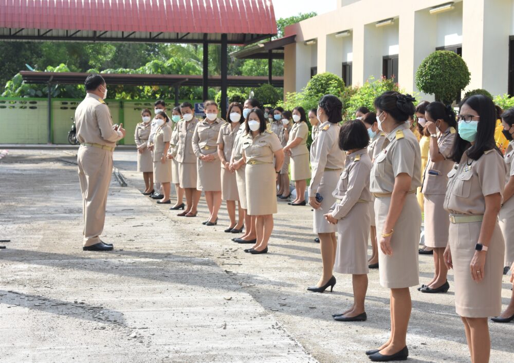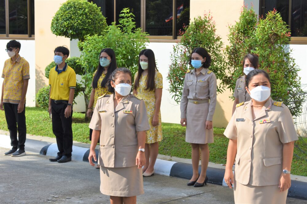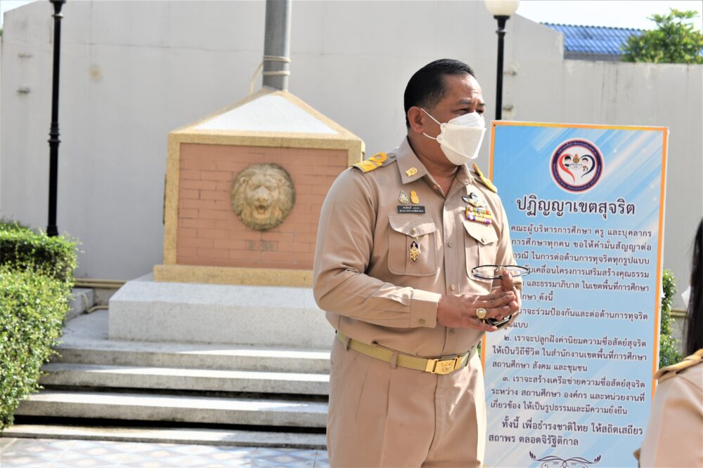 กิจกรรมเข้าแถวเคารพธงชาติ ไหว้พระบูชาพระรัตนตรัย และกล่าวคำปฏิญญาเขตพื้นที่การศึกษาสุจริต