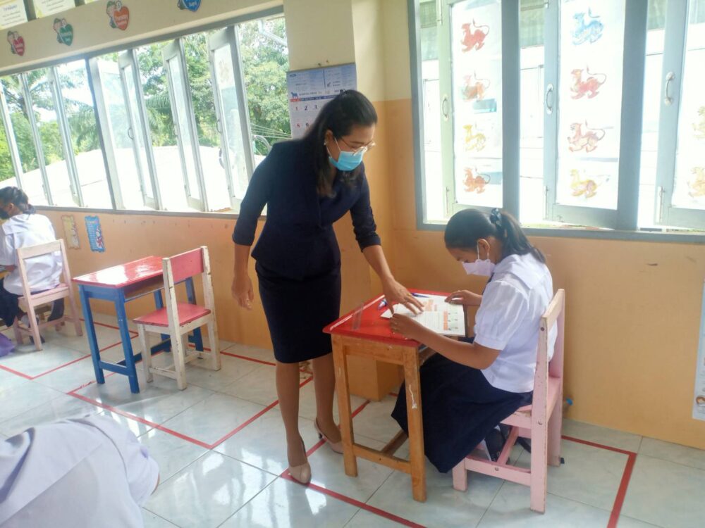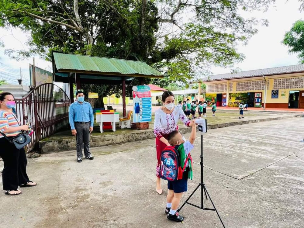 วันที่ 17 พฤษภาคม 2565 ดร.ศักดิ์สิทธิ์ แร่ทอง ผอ.สพป.ชุมพร เขต 1 มอบหมายให้คณะกรรมการประเมินความพร้อมการเปิดภาคเรียนที่ 1 ปีการศึกษา 2565 ลงพื้นที่ตรวจเยี่ยม ติดตามการจัดการเรียนการสอน on-site เปิดภาคเรียนที่ 1 ปีการศึกษา 2565 โดย สพป.ชุมพร เขต 1 ได้แต่งตั้งคณะกรรมการฯ จำนวน 10 คณะ ซึ่งในแต่ละคณะ ประกอบด้วย รอง ผอ.สพป.ชุมพร เขต 1 ผู้อำนวยการกลุ่ม/หน่วย ศึกษานิเทศ และเจ้าหน้าที่ของสำนักงานเขตฯ เพื่อออกตรวจเยี่ยม ติดตามและประเมินความพร้อมโรงเรียนในสังกัดทุกโรงเรียน ในช่วงระหว่างวันที่ 17-20 พฤษภาคม 2565 โดยภาพรวมเปิดเรียนวันแรก เป็นไปด้วยความเรียบร้อย โรงเรียนมีความพร้อมที่จะรับมือสถานการณ์ต่างๆ เป็นอย่างดี ซึ่งพบว่า ทางโรงเรียนปฏิบัติตามมาตรการป้องกันการแพร่ระบาดของโรคติดเชื้อไวรัสโคโรนา 2019 อย่างเคร่งครัด มีจุดคัดกรองที่ประตูทางเข้าโรงเรียน ให้นักเรียนสวมหน้ากากอนามัย มีการตรวจวัดอุณหภูมิร่างกาย ล้างมือด้วยเจลแอลกอฮอล์ มีครูคอยดูแลเว้นระยะห่างให้กับนักเรียน ห้องเรียนมีการจัดโต๊ะโดยให้เว้นระยะห่างประมาณ 1 เมตร ส่วนการรับประทานอาหารกลางวันมีการจัดแบ่งเวลาเด็กของแต่ละช่วงชั้นในการรับประทาน ทั้งนี้ นักเรียนสามารถนำอาหารกลับมาทานที่ห้องเรียนเพื่อลดการแออัดได้ด้วย โดยครูจะคอยทำความเข้าใจไม่ให้นักเรียนรวมกลุ่มกันเป็นจำนวนมากและมีแผนเผชิญเหตุเพื่อการเตรียมพร้อมหากพบนักเรียนมีความเสี่ยงสูงในการติดเชื้อไวรัสโคโรนา 2019 ทั้งนี้ เพื่อสร้างความมั่นใจให้กับผู้ปกครองว่านักเรียนมีความปลอดภัยเมื่อกลับเรียนในโรงเรียน.-