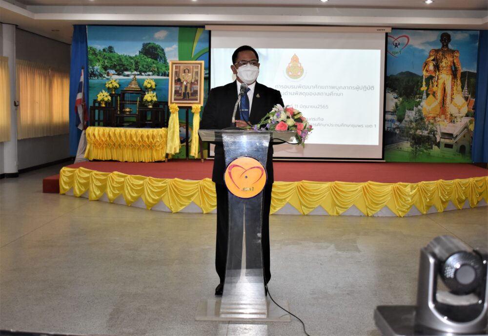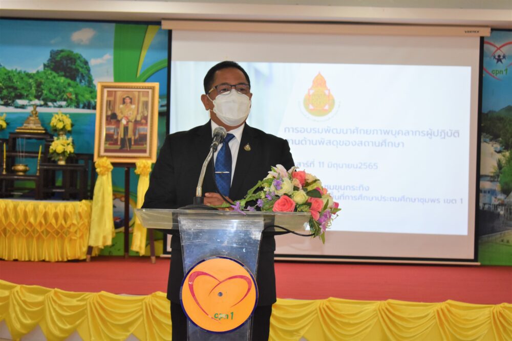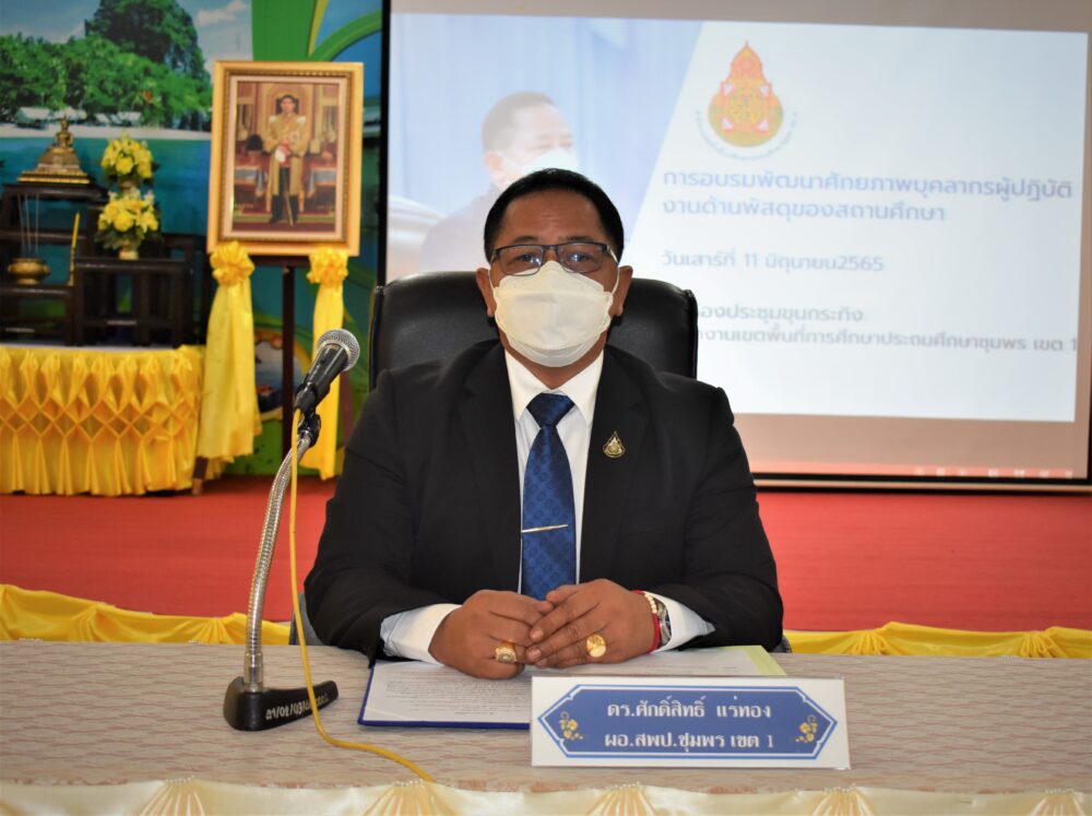 ดร.ศักดิ์สิทธิ์ แร่ทอง ผอ.สพป. ชุมพร เขต 1 เป็นประธานเปิดการอบรมพร้อมบรรยายพิเศษ โครงการอบรมพัฒนาศักยภาพบุคลากรสำหรับผู้ปฏิบัติงานด้านพัสดุสถานศึกษา ประจำปีงบประมาณ 2565