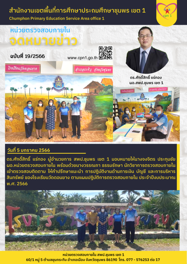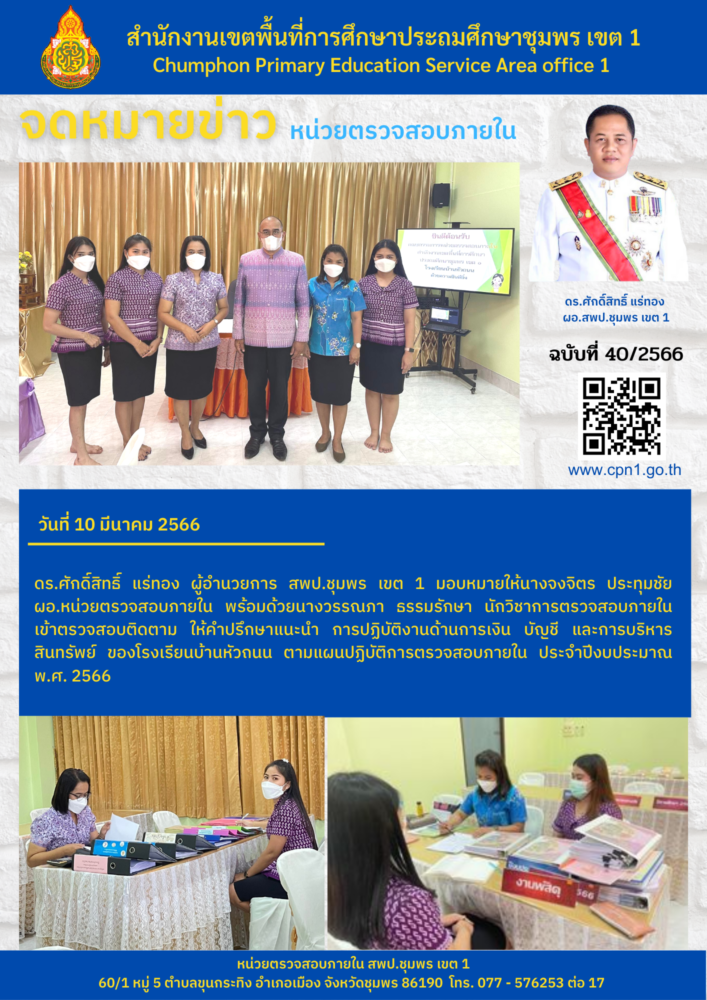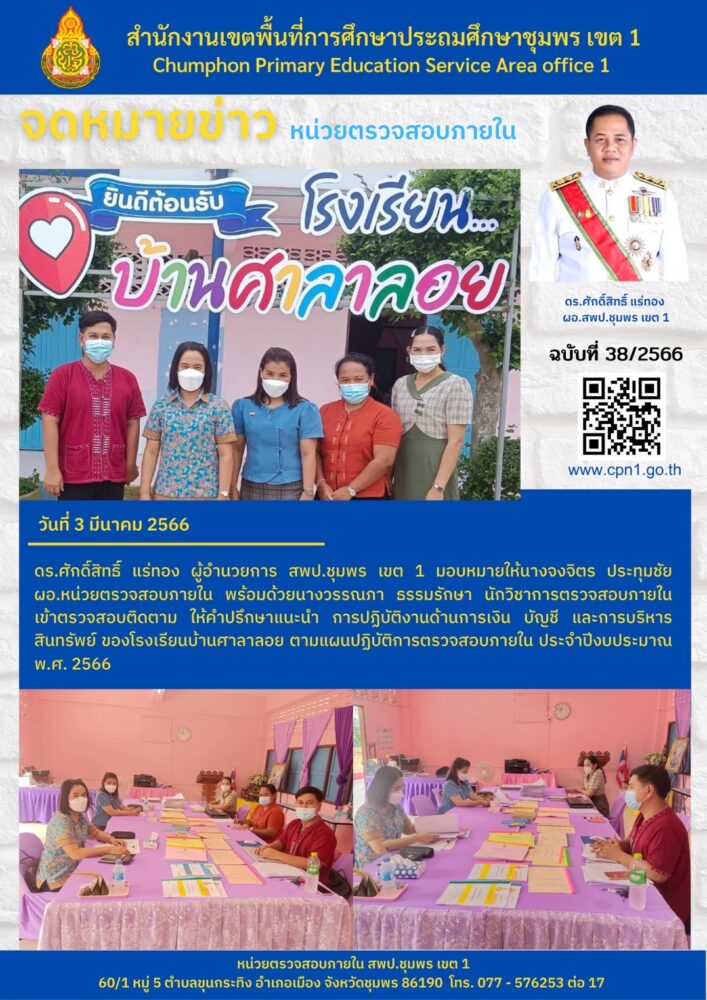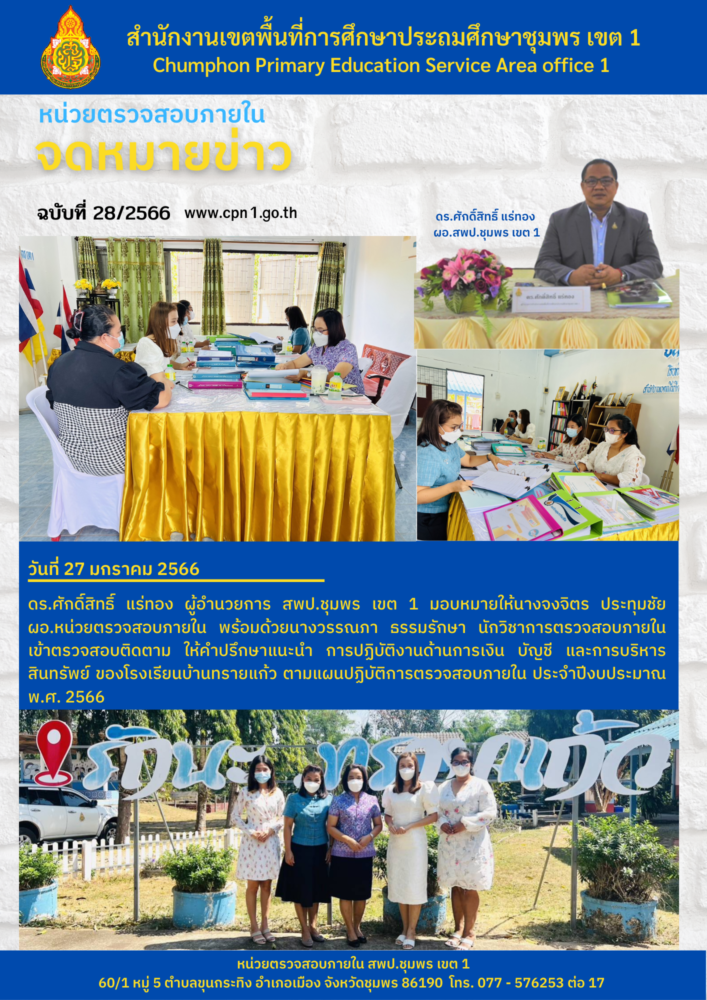 2.3 การจัดทำแผนการตรวจสอบภายใน ประจำปีงบประมาณ พ.ศ. 2566 และลงพื้นที่ตรวจสอบตามแผนที่วางไว้