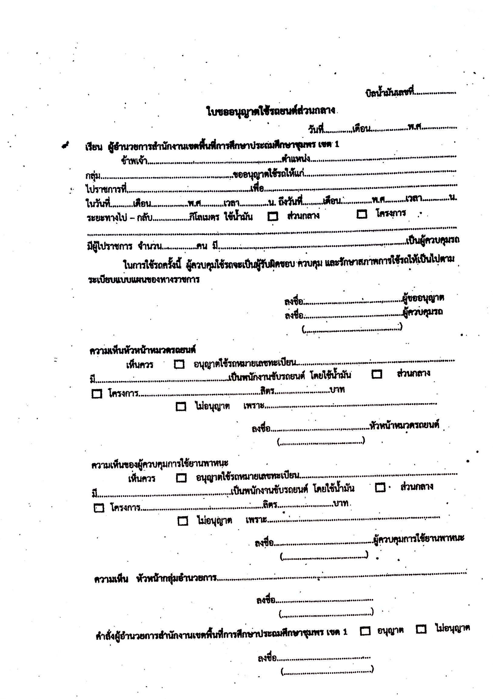 3.1 ก่อนนำรถราชการออกใช้ทุกครั้งให้มีการ ขออนุญาตทุกกรณี