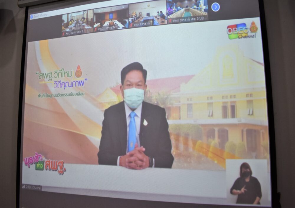 วันที่ 20 กรกฎาคม 2565 เวลา 08.00 น. ดร.ศักดิ์สิทธิ์ แร่ทอง ผอ.สพป.ชพ. 1 พร้อมด้วย ผู้อำนวยการกลุ่ม/หน่วย และผู้ที่เกี่ยวข้อง เข้าร่วมรับชมรับฟังรายการ "พุธเช้าข่าว สพฐ."ครั้งที่ 24/2565 ผ่านระบบ Video Conference ณ ห้องประชุมเขาปูน อาคารสโมสร สพป.ชุมพร เขต 1 เพื่อรับฟังข้อราชการ และนโยบายการดำเนินงานการจัดการศึกษาในเรื่องต่างๆ อาทิ เรื่องความปลอดภัยในสถานศึกษา การสอบแข่งขันทุกระดับ และการดำเนินชีวิตบนพื้นฐานความดีและพอเพียง โดย ดร.อัมพร พินะสา เลขาธิการ กพฐ. เป็นประธานการประชุม หลังจากนั้น ดร.ศักดิ์สิทธิ์ แร่ทอง ผอ.สพป.ชพ. 1 ได้เป็นประธานดำเนินการประชุมเพื่อร่วมวางแผนขับเคลื่อนภารกิจงานสำคัญของสำนักงานเขตฯ พร้อมได้ติดตามการดำเนินงานของแต่ละกลุ่ม โดยมี ผอ.กลุ่ม/หน่วย ร่วมชี้แจงรายละเอียดผลการดำเนินงานและภารกิจงานของกลุ่ม