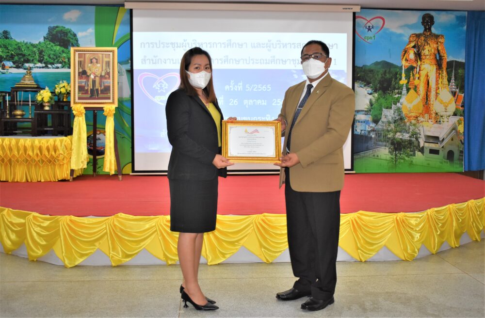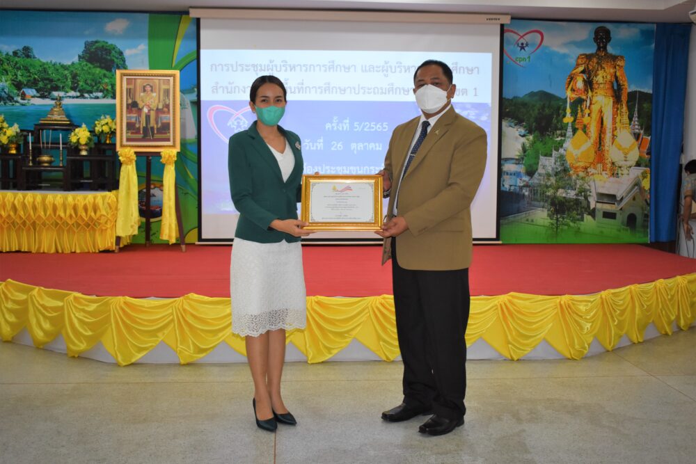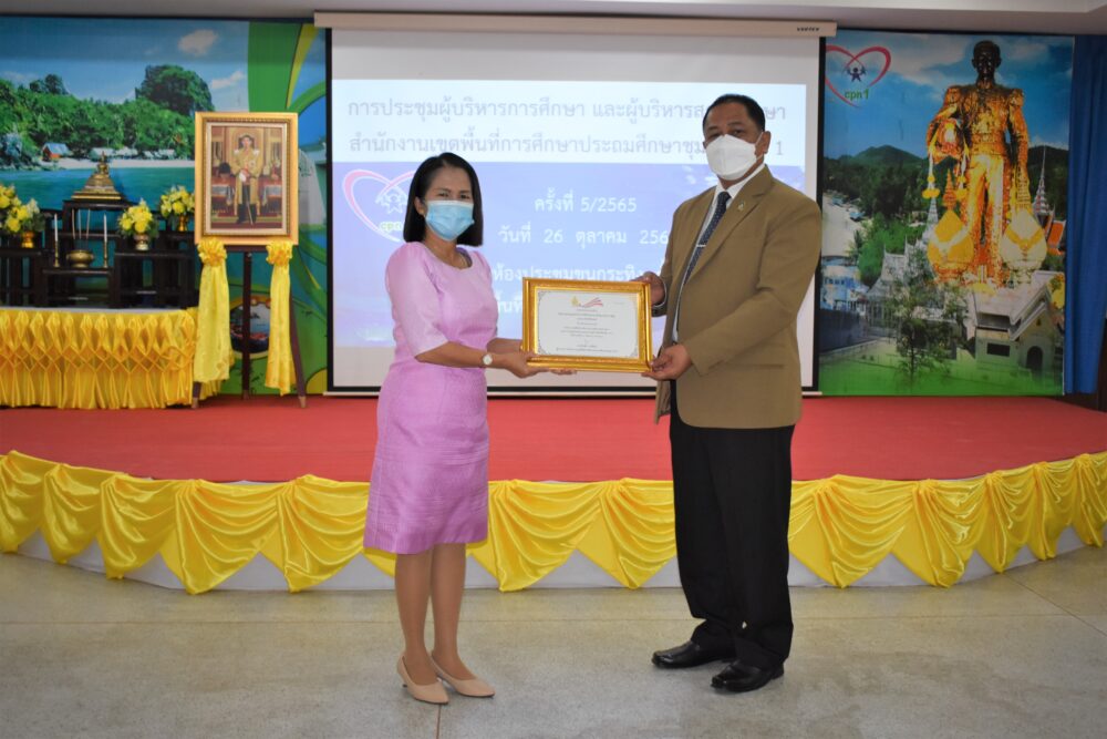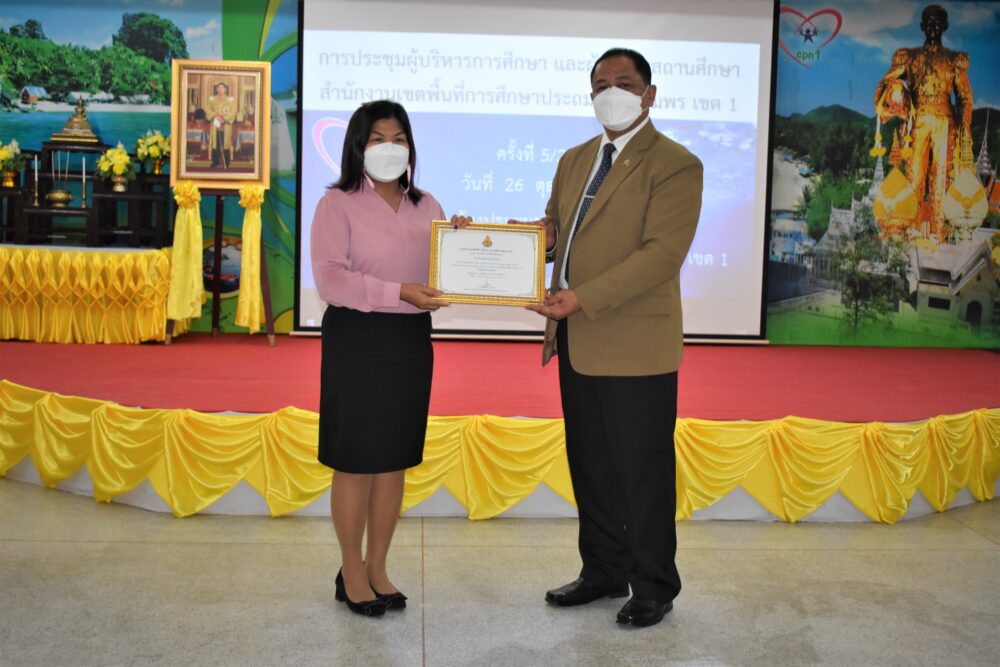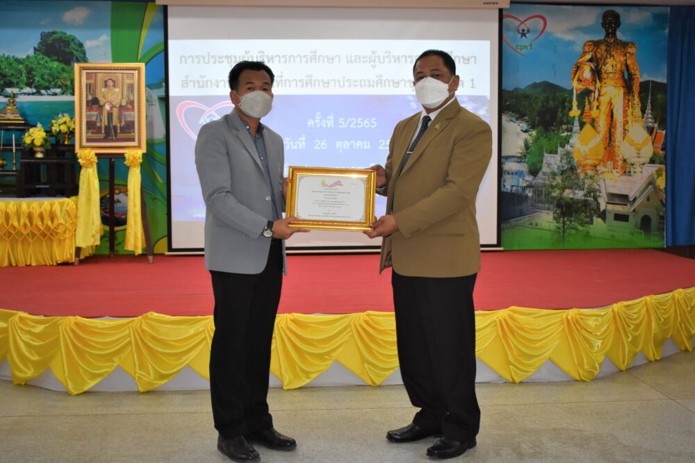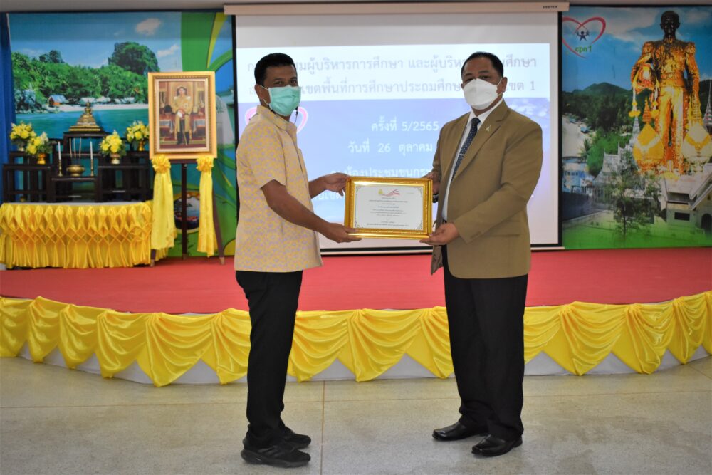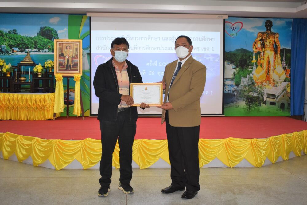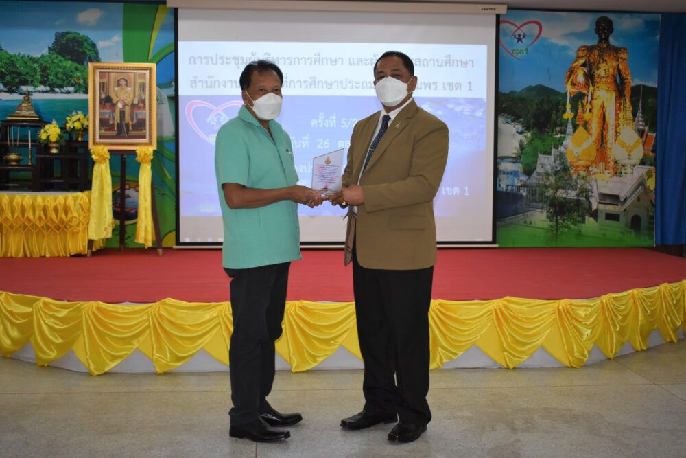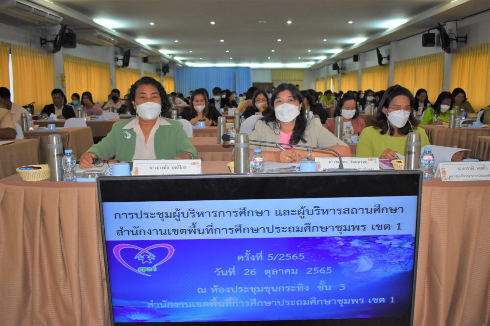 วันที่ 26 ตุลาคม 2565 เวลา 13.30 น. ดร.ศักดิ์สิทธิ์ แร่ทอง ผอ.สพป.ชุมพร เขต 1 เป็นประธานการประชุม ผู้บริหารการศึกษา ผู้บริหารสถานศึกษา และผู้อำนวยการกลุ่ม/หน่วย ครั้งที่ 5/2565 เพื่อแจ้งข้อราชการ พร้อมได้มอบนโยบาย เกี่ยวกับการเตรียมความพร้อมเปิดภาคเรียนที่ 2/2565 โดยให้โรงเรียนตรวจสอบสิ่งก่อสร้าง อาคารสถานที่ สิ่งอำนวยความสะดวก สภาพแวดล้อมในโรงเรียน เพื่อความปลอดภัยของนักเรียน ทั้งด้านร่างกายและสุขภาพอนามัย และก่อนเข้าสู่ระเบียบวาระการประชุม ได้มีการมอบเงินรายได้จากการจัดกิจกรรมของฝ่ายนันทนาการงานแสดงมุทิตาจิต สพป.ชุมพร เขต 1 ประจำปี 2565 เพื่อสมทบเข้ากองทุนช่วยเหลือนักเรียน ครู และบุคลากรทางการศึกษา สพป.ชุมพร เขต 1 จำนวน 81,000 บาท การมอบโล่และเกียรติบัตรให้กับโรงเรียนที่มีผลการประเมินคุณธรรมความโปร่งใสในการดำเนินงานของสถานศึกษาออนไลน์ ประจำปี 2565 ที่มีผลการประเมินระดับ AA จำนวน 6 โรงเรียน และระดับ A จำนวน 25 โรงเรียน การมอบเกียรติบัตรโรงเรียนคุณธรรม สพฐ.(โรงเรียน 3 ดาว) หลังจากนั้น ได้ดำเนินการตามระเบียบวาระการประชุมตามลำดับ โดยมีผู้อำนวยการกลุ่ม/หน่วย ร่วมชี้แจงภารกิจและการดำเนินงานเรื่องต่างๆของกลุ่มงานในสพป.ชพ.1 ให้ที่ประชุมได้รับทราบในการประชุมครั้งนี้ ณ ห้องประชุมขุนกระทิง 1 ชั้น 3