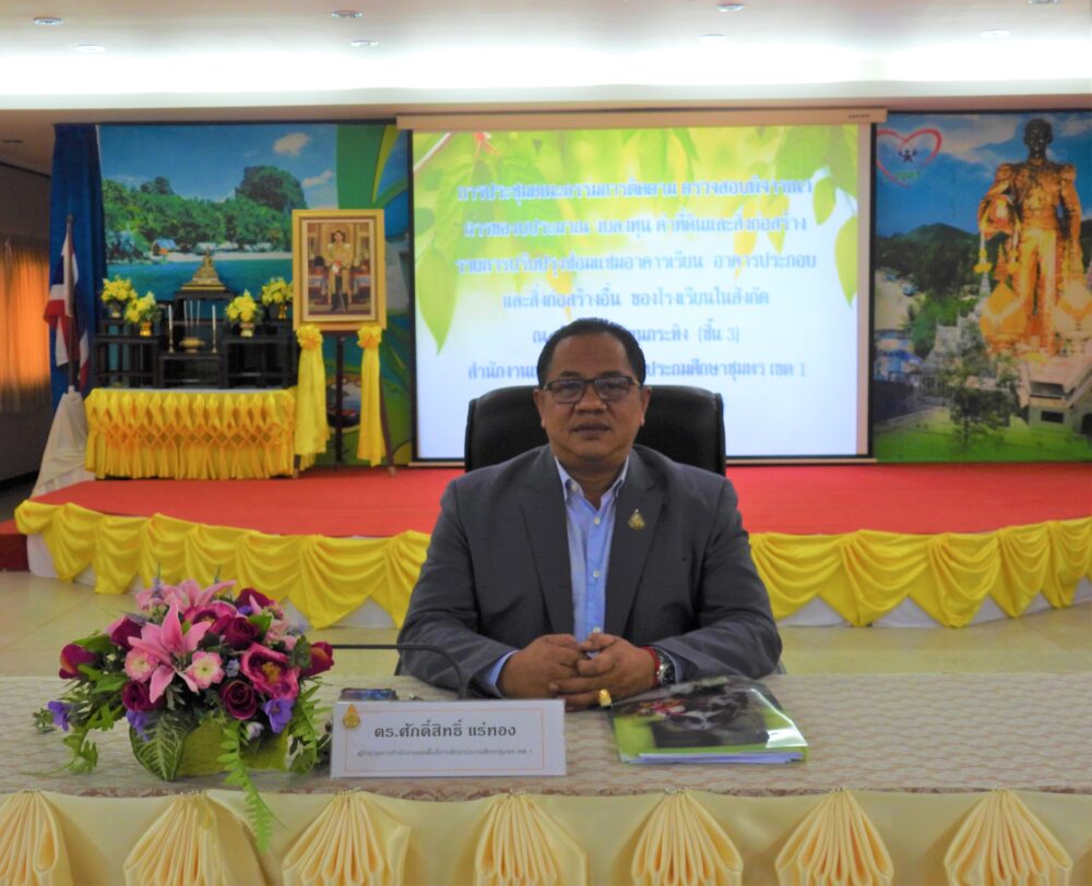 วันพุธที่ 16 พฤศจิกายน พ.ศ.2565 เวลา 09.30 น. ดร.ศักดิ์สิทธิ์ แร่ทอง ผู้อำนวยการสำนักงานเขตพื้นที่การศึกษาประถมศึกษาชุมพร เขต 1 เป็นประธานประชุมคณะกรรมการติดตาม ตรวจสอบพิจารณา การของบประมาณ งบลงทุน ค่าที่ดินและสิ่งก่อสร้าง รายการปรับปรุงซ่อมแซมอาคารเรียน อาคารประกอบ และสิ่งก่อสร้างอื่น ของโรงเรียนในสังกัด เพื่อเตรียมการจัดตั้งงบประมาณ ประจำปีงบประมาณ พ.ศ.2567 ณ ห้องประชุมขุนกระทิง 1 ชั้น 3 สพป.ชุมพร เขต 1