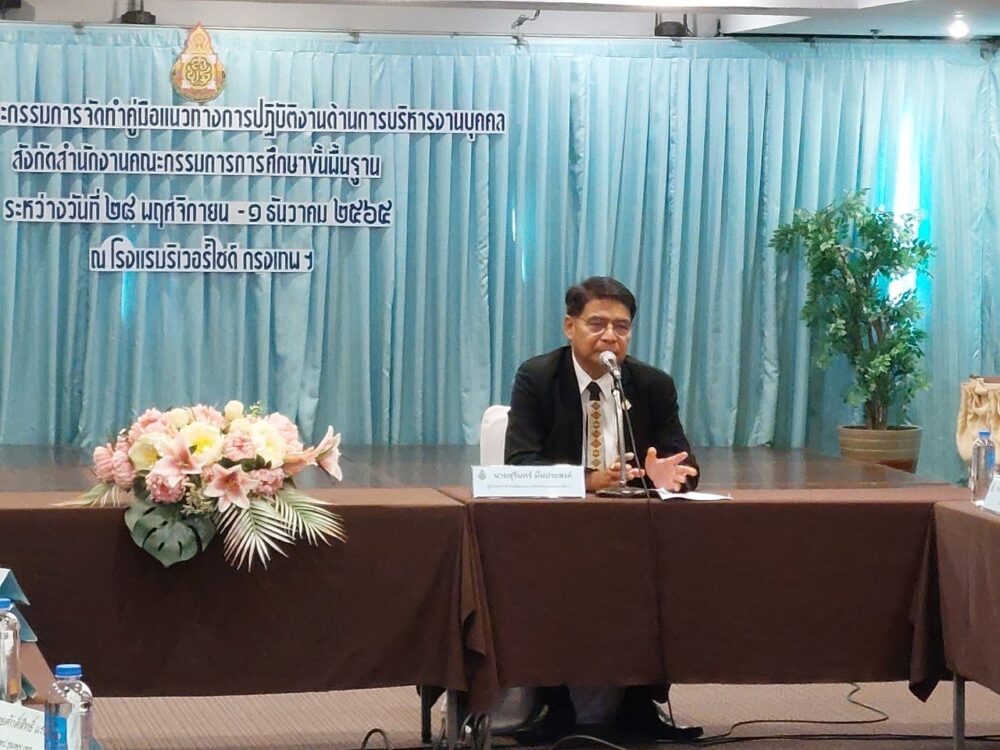 วันที่ 28 พฤศจิกายน – 1 ธันวาคม 2565 ดร.ศักดิ์สิทธิ์ แร่ทอง ผู้อำนวยการสำนักงาน เขตพื้นที่การศึกษาประถมศึกษาชุมพร เขต 1 เข้าร่วมการประชุม และเป็นคณะกรรมการดำเนินงาน ตามคำสั่งสำนักงานคณะกรรมการการศึกษาขั้นพื้นฐาน ที่ 2283/2565 เรื่อง แต่งตั้งคณะกรรมการจัดทำคู่มือแนวทางการปฏิบัติงานด้านการบริหารงานบุคคล สังกัดสำนักงานคณะกรรมการการศึกษาขั้นพื้นฐาน ในการร่วมดำเนินการศึกษา วิเคราะห์ และแก้ไขร่างคู่มือฯ เพื่อจัดทำคู่มือแนวทางการปฏิบัติงานด้านการบริหารงานบุคคล สังกัดสำนักงานคณะกรรมการการศึกษาขั้นพื้นฐาน นำเสนอเลขาธิการคณะกรรมการการศึกษาขั้นพื้นฐานต่อไป โดยมี ดร.อัมพร พินะสา เลขาธิการคณะกรรมการการศึกษาขั้นพื้นฐาน เป็นประธานการประชุม ณ โรงแรมริเวอร์ไซต์ กรุงเทพมหานคร