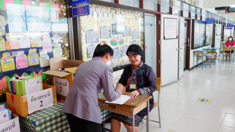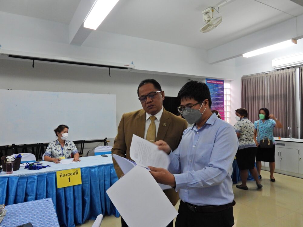 วันที่ 3 ธันวาคม 2565 ดร.ศักดิ์สิทธิ์ แร่ทอง ผู้อำนวยการสำนักงานเขตพื้นที่การศึกษาประถมศึกษาชุมพร เขต 1 ประธานคณะกรรมการอำนวยการสอบ ตรวจเยี่ยมสนามสอบสรรหาและเลือกสรรพนักงานราชการ ตำแหน่งครูผู้สอน สังกัดสำนักงานเขตพื้นที่การศึกษาประถมศึกษาชุมพร เขต 1 ณ สนามสอบโรงเรียนอนุบาลชุมพร อำเภอเมือง จังหวัดชุมพร โดยมีการดำเนินการจัดสอบ 2 วัน วันที่ 3 และ 4 ธันวาคม 2565 ซึ่งวันแรก เป็นการสอบภาค ก ความรอบรู้ และความรู้ความเข้าใจเกี่ยวกับระเบียบกฎหมายที่ใช้ในการปฏิบัติงาน และ ภาค ข ความรู้ความสามารถที่ใช้เฉพาะตำแหน่งและวิชาเอก และวันที่สอง สอบภาค ค ความเหมาะสมกับตำแหน่งและวิชาชีพ (สัมภาษณ์ และประเมินแฟ้มสะสมผลงาน) มีผู้สมัครเข้ารับการเลือกสรร จำนวน 51 คน มาเข้าสอบ จำนวน 47 คน ขาดสอบ 4 คน ในการนี้ประธานคณะกรรมการอำนวยการสอบ ได้ดำเนินการประชุมคณะกรรมการที่เกี่ยวข้อง เพื่อชี้แจงการดำเนินการสอบ โดยได้กำชับให้คณะกรรมการทุกฝ่ายดำเนินการสอบด้วยความโปร่งใส ยุติธรรม ทุกขั้นตอน และให้ปฏิบัติตามระเบียบกระทรวงศึกษาธิการว่าด้วยการปฏิบัติของผู้เข้าสอบอย่างเคร่งครัด ทั้งนี้ ได้เยี่ยมพบปะพูดคุยกับคณะกรรมการที่ปฏิบัติหน้าที่ประจำสนามสอบ และพุดคุยให้กำลังใจกับผู้เข้าสอบในครั้งนี้