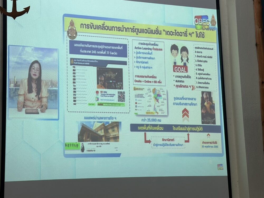 >> >> วันที่ 11 มกราคม 2566 ดร.ศักดิ์สิทธิ์ แร่ทอง ผู้อำนวยการสำนักงานเขตพื้นที่การศึกษาประถมศึกษาชุมพร เขต 1 มอบหมายให้ นายเสรี พรหมฤทธิ์ รองผู้อำนวยการสำนักงานเขตพื้นที่การศึกษาประถมศึกษาชุมพร เขต 1 และคณะศึกษานิเทศก์ เข้าร่วมการประชุมสื่อสารสร้างความเข้าใจ ความชัดเจนแก่หน่วยปฏิบัติในระดับเขตพื้นที่การศึกษาและสถานศึกษา ในการจัดการเรียนการสอนประวัติศาสตร์ด้วยกระบวนการจัดการเรียนรู้เชิงรุก (Active Learning) บทบาทในการขับเคลื่อนการเรียนการสอนประวัติศาสตร์ การจัดโครงสร้างหลักสูตรสถานศึกษา การจัด การเรียนรู้ประวัติศาสตร์วิถีใหม่และการใช้สื่อแหล่งเรียนรู้ การวัดและประเมินผล และบทบาทการนิเทศ กำกับ ติดตามและสนับสนุนช่วยเหลือครูในการจัดการเรียนการสอนประวัติศาสตร์ ผ่านระบบการถ่ายทอดสด OBEC Channel ณ ห้องประชุมบางผรา อาคารสโมสร สำนักงานเขตพื้นที่การศึกษาประถมศึกษาชุมพร เขต 1