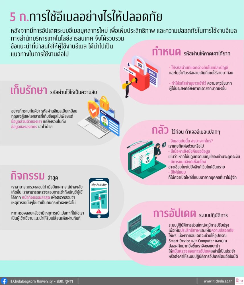 5 ก.การใช้อีเมลอย่างไรให้ปลอดภัย 24 มกราคม 256624 มกราคม 2023 anawat.n ความปลอดภัยด้านไอที รูปที่ 1.1 ใช้อีเมลอย่างไรให้ปลอดภัย ที่มา : www.it.chula.ac.th เอกสารเผยแพร่ Email-Security-Checklist-3-1756×2048 FacebookFacebookXXLINELine anawat.n