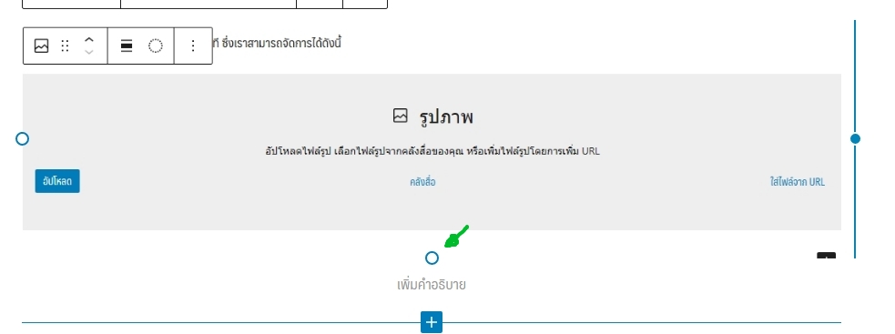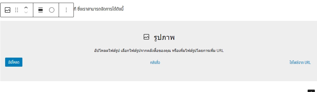 - จะปรากฏบล็อกสำหรับแทรกรูปภาพเข้ามาทันที ซึ่งเราสามารถจัดการได้ดังนี้