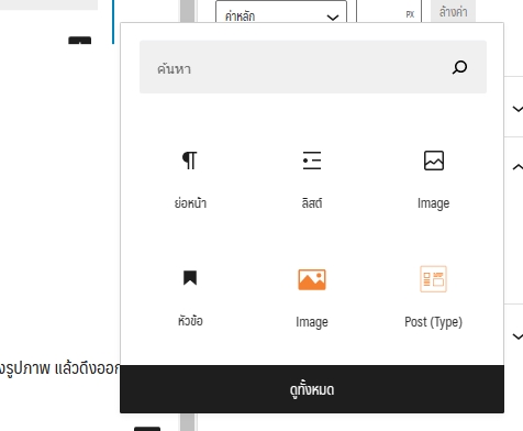 - คลิกเลือกบล็อก Image หรือกรอกคำว่า Image ในช่องค้นหาบล็อกก็ได้ แล้วคลิกเลือกบล็อก Image