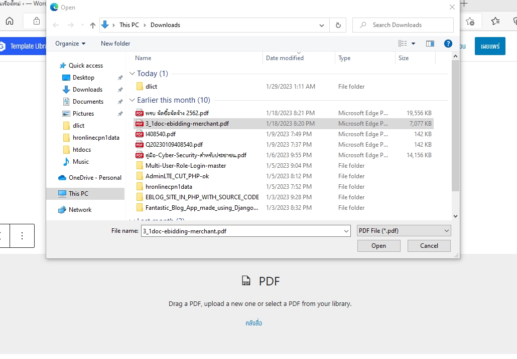 - เลือกไฟล์ PDF จากตำแหน่งไฟล์ในเครื่องคอมพิวเตอร์