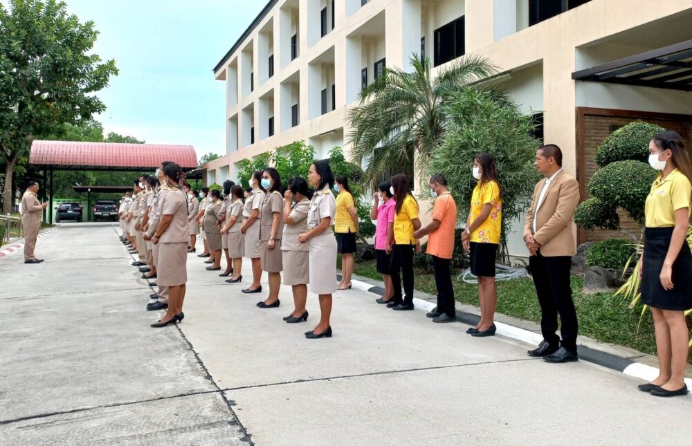 วันจันทร์ที่ 30 มกราคม 2566 เวลา 08.30 น. ดร. ศักดิ์สิทธิ์ แร่ทอง ผู้อำนวยการ สพป.ชพ. 1 พร้อมด้วยนายเสรี พรหมฤทธิ์ รอง ผอ.สพป.ชพ.1 ข้าราชการและลูกจ้างในสำนักงานเขตพื้นที่การศึกษาฯ ร่วมกิจกรรมเคารพธงชาติ บูชาพระรัตนตรัย และกล่าวคำปฏิญญาเขตพื้นที่การศึกษาสุจริต เพื่อให้ทุกคนได้ตระหนักและเห็นคุณค่าของชาติ สร้างความรัก สามัคคี ให้เกิดในหน่วยงาน สร้างวินัย รู้หน้าที่ ความรับผิดชอบ ปฏิบัติดีปฏิบัติชอบ ภายใต้คุณธรรมนำความรู้ เพื่อสร้างและรักษาเอกลักษณ์ขององค์กร แสดงออกเชิงสัญลักษณ์ในการขับเคลื่อนโครงการเสริมสร้างคุณธรรมจริยธรรม และธรรมาภิบาลในเขตพื้นที่การศึกษา "ป้องกันการทุจริต" (เขตสุจริต) โดยท่านผู้อำนวยการสำนักงานเขตพื้นที่การศึกษาประถมศึกษาชุมพร เขต 1 ได้พบปะพูดคุย โดยได้ขอบคุณบุคลากรทุกคนที่ได้ร่วมปฏิบัติหน้าที่ในภารกิจงานต่างๆของสำนักงานเขตในสัปดาห์ที่ผ่านมาซึ่งเป็นไปด้วยความเรียบร้อย พร้อมได้ชี้แจงแจ้งภารกิจงานต่างๆ ของสัปดาห์นี้ เพื่อให้ทุกคนได้เตรียมความพร้อมในการปฏิบัติงานต่อไป ทั้งนี้ ได้เน้นย้ำให้ทุกคนปฏิบัติหน้าที่ด้วยความละเอียดรอบคอบ เพื่อไม่ให้เกิดความเสียหายต่อราชการ และกับบุคลลอื่นที่เข้ามาติดต่อและรับบริการจากสำนักงานเขตฯ.-