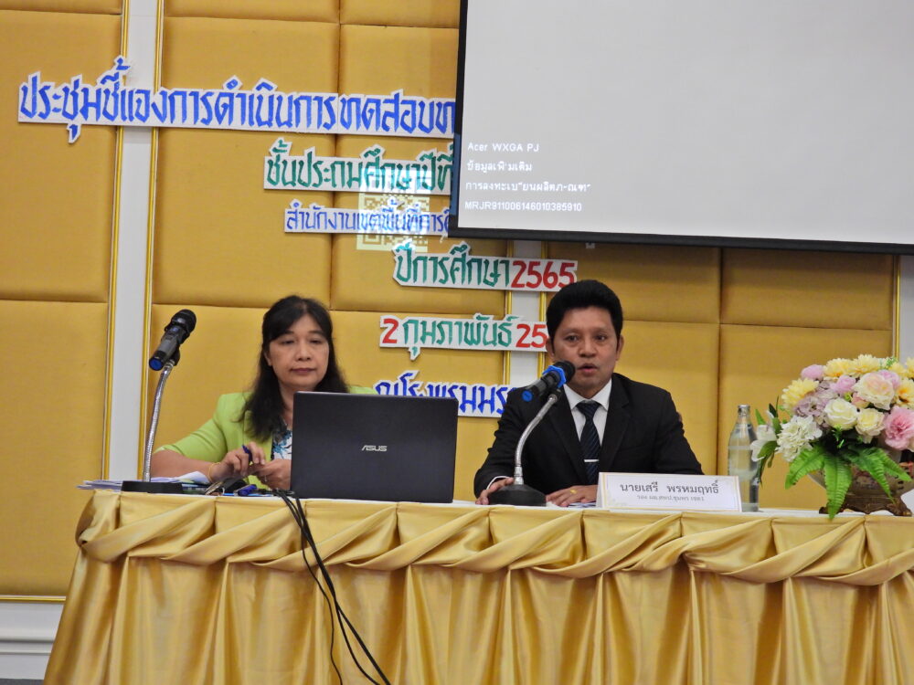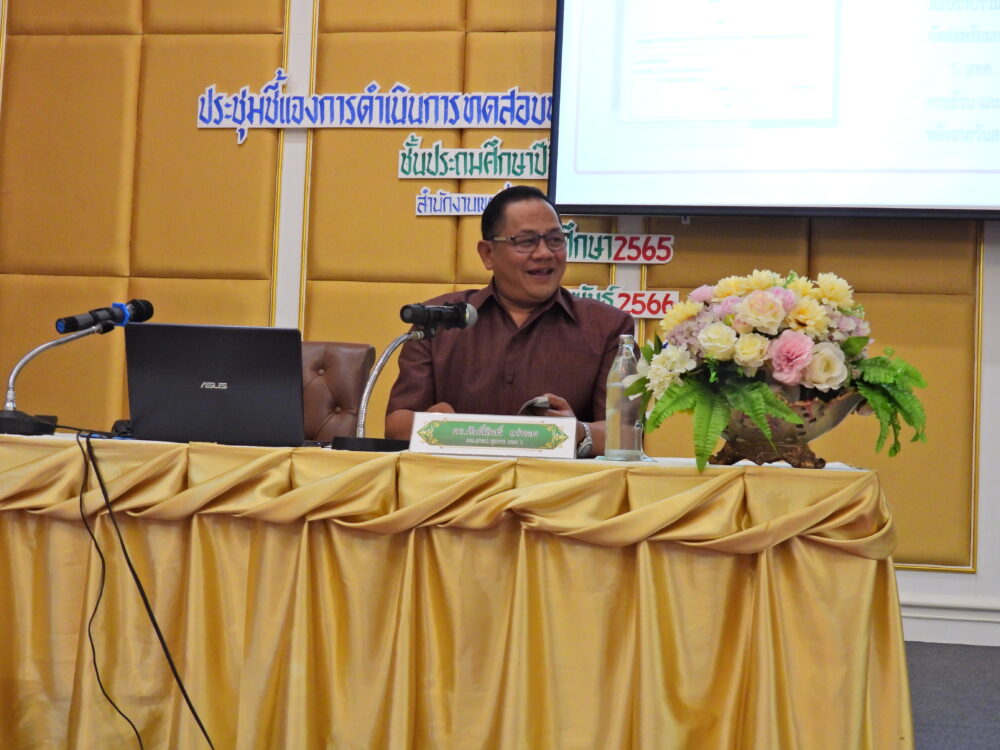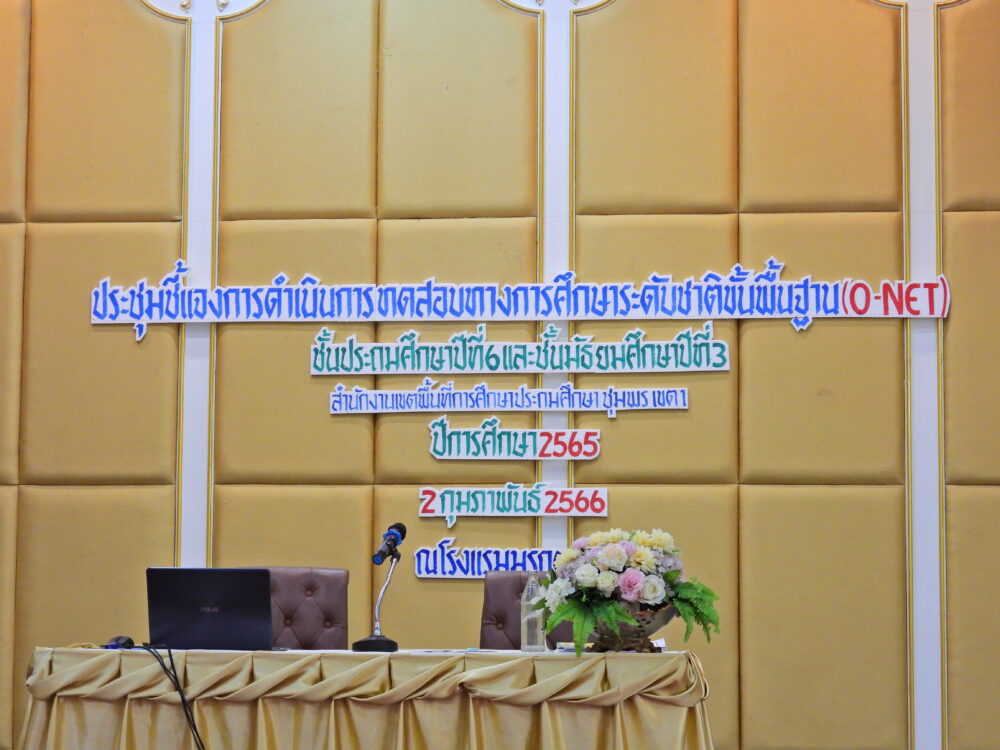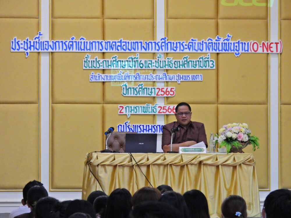 >>เมื่อวันที่ 2 กุมภาพันธ์ 2566 08.30 น. ดร.ศักดิ์สิทธิ์ แร่ทอง ผอ.สพป.ชุมพร เขต1 เป็นประธานการประชุมชี้แจงสนามสอบ ในการดำเนินการทดสอบทางการศึกษาระดับชาติขั้นพื้นฐาน (O-NET) ปีการศึกษา 2565 ระดับชั้นประถมศึกษาปีที่ 6 กำหนดสอบในวันที่ 11 กุมภาพันธ์ 2566 โรงเรียนในเขตบริการเข้ารับการทดสอบจำนวน 109 โรงเรียน มีสนามสอบ 22 สนามสอบ จำนวน 92 ห้องสอบ และชั้นมัธยมศึกษาปีที่ 3 สอบในวันที่ 12 กุมภาพันธ์ 2566 โรงเรียนในเขตบริการเข้ารับการทดสอบ จำนวน 44 โรงเรียน มีสนามสอบ 15 สนามสอบ จำนวน 42 ห้องสอบ โดยมี นายเสรี พรหมฤทธิ์ รอง ผอ.สพป.ชุมพร เขต 1 และนางชมัยพร รัตนพรหม ผู้อำนวยการกลุ่มนิเทศ ติดตามและประเมินผลการจัดการศึกษา ร่วมชี้แจงรายละเอียด ณ ห้องประชุมปทุมทิพย์ ชั้น 2 โรงแรมมรกต ทวิน จังหวัดชุมพร ..>>