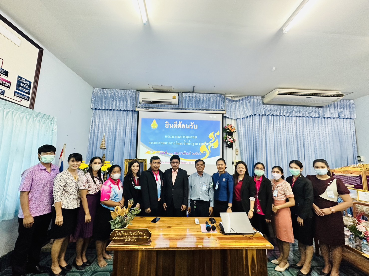 วันที่ 11 กุมภาพันธ์ 2566 ดร.ศักดิ์สิทธิ์ แร่ทอง ผู้อำนวยการสำนักงานเขตพื้นที่การศึกษาประถมศึกษาชุมพร เขต 1 พร้อมด้วย นายเสรี พรหมฤทธิ์ รอง ผู้อำนวยการสำนักงานเขตพื้นที่การศึกษาประถมศึกษาชุมพร เขต 1 นางชมัยพร รัตนพรหม ผู้อำนวยการกลุ่มนิเทศติดตามและประเมินผลการจัดการศึกษา และคณะศึกษานิเทศก์ ลงพื้นที่ตรวจเยี่ยมการดำเนินการทดสอบทางการศึกษาระดับชาติขั้นพื้นฐาน (O-NET) ปีการศึกษา 2565 ระดับชั้น ป. 6 ณ โรงเรียนที่เป็นสนามสอบในสังกัดสำนักงานเขตพื้นที่การศึกษาประถมศึกษาชุมพร เขต 1ื เพื่อให้กำลังใจกับนักเรียนที่เข้าสอบ และคณะกรรมการที่ปฏิบัติหน้าที่ประจำสนามสอบ.-