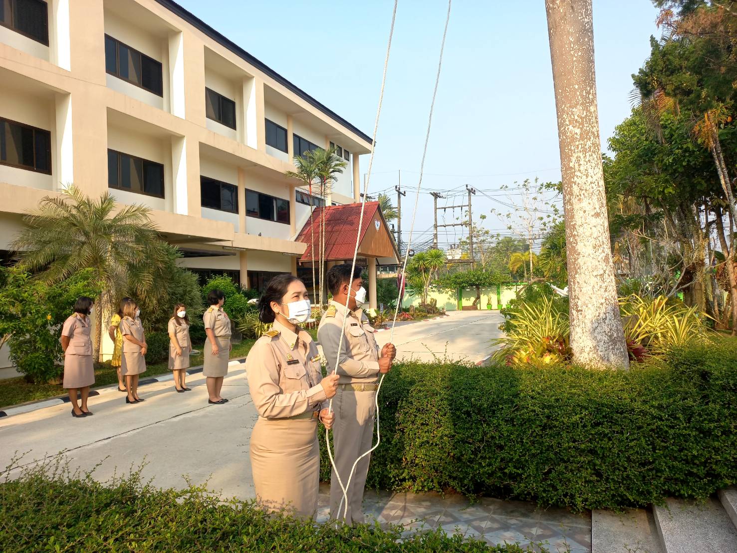 วันจันทร์ที่ 20 กุมภาพันธ์ 2566 เวลา 08.30 น. ดร. ศักดิ์สิทธิ์ แร่ทอง ผู้อำนวยการสำนักงานเขตพื้นที่การศึกษาประถมศึกษาชุมพร เขต 1 มอบหมายให้นายเสรี พรหมฤทธิ์ รองผู้อำนวยการสำนักงานเขตพื้นที่การศึกษาประถมศึกษาชุมพร เขต 1 พร้อมด้วยผู้อำนวยการกลุ่ม/หน่วย และบุคลากรในสำนักงานเขตพื้นที่การศึกษาฯ ร่วมกิจกรรมเคารพธงชาติ บูชาพระรัตนตรัย และกล่าวคำปฏิญญาเขตพื้นที่การศึกษาสุจริต เพื่อให้ทุกคนได้ตระหนักและเห็นคุณค่าของชาติ สร้างความรัก สามัคคี ให้เกิดในหน่วยงาน สร้างวินัย รู้หน้าที่ ความรับผิดชอบ ปฏิบัติดีปฏิบัติชอบ ภายใต้คุณธรรมนำความรู้ เพื่อสร้างและรักษาเอกลักษณ์ขององค์กร แสดงออกเชิงสัญลักษณ์ในการขับเคลื่อนโครงการเสริมสร้างคุณธรรมจริยธรรม และธรรมาภิบาลในเขตพื้นที่การศึกษา "ป้องกันการทุจริต" (เขตสุจริต) ณ บริเวณหน้าอาคารสำนักงานเขตพื้นที่การศึกษาประถมศึกษาชุมพร เขต 1