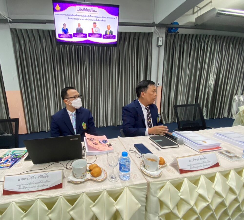 >>เมื่อวันที่ 22 กุมภาพันธ์ 2566 ดร.ศักดิ์สิทธิ์ แร่ทอง ผู้อำนวยการสำนักงานเขตพื้นที่การศึกษาประถมศึกษาชุมพร เขต 1 เป็นคณะกรรมการในการประเมินสัมฤทธิผลการปฏิบัติงานในหน้าที่เพื่อพัฒนาการศึกษา ตำแหน่งรองผู้อำนวยการสำนักงานเขตพื้นที่การศึกษา สังกัดสำนักงานคณะกรรมการการศึกษา ขั้นพื้นฐาน ในระยะเวลา 1 ปี (ครั้งที่ 2) ของ นายพรนิวัตร สนั่นเอื้อ รอง ผอ.สพม.สมุทรสาคร สมุทรสงคราม และนายดำรง รอดสิน รอง ผอ.สพม.สมุทรสาคร สมุทรสงคราม โดยมีนายสุรทิน ทิพย์อักษร ผอ.สพป.นครศรีธรรมราช เขต 2 เป็นประธานกรรมการ นายมังกรแก้ว ดรุณศิลป์ อดีต ผอ.สพป.ประจวบคีรีขันธ์ เขต 1 ร่วมเป็นคณะกรรมการประเมินฯ ในครั้งนี้ ณ สำนักงานเขตพื้นที่การศึกษามัธยมศึกษาสมุทรสาคร สมุทรสงคราม