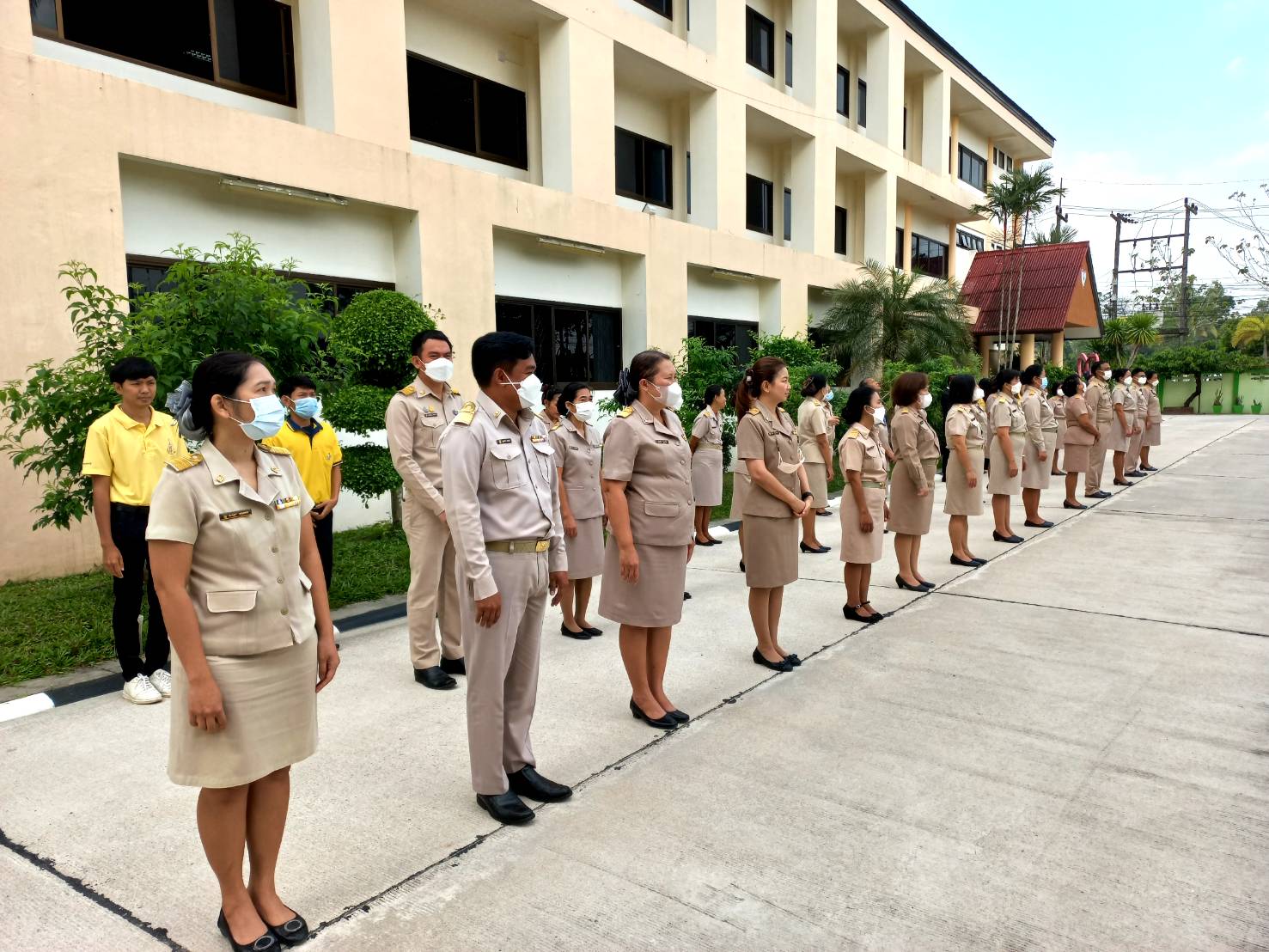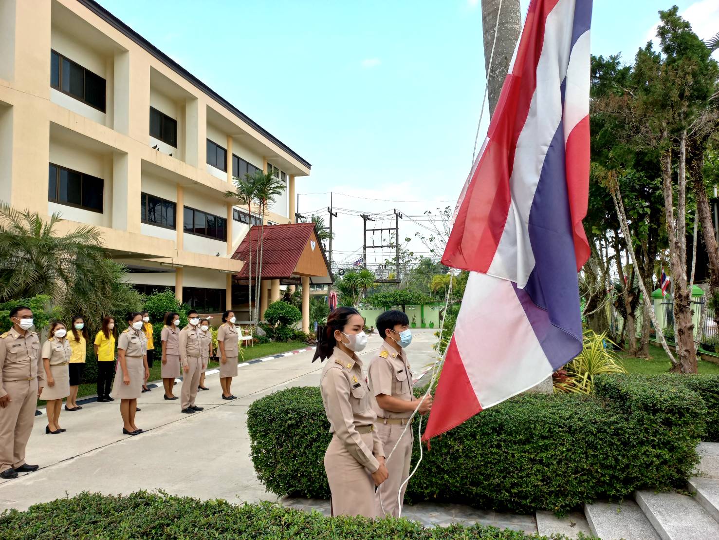 >> วันจันทร์ที่ 27 กุมภาพันธ์ 2566 เวลา 08.30 น. ดร. ศักดิ์สิทธิ์ แร่ทอง ผู้อำนวยการสำนักงานเขตพื้นที่การศึกษาประถมศึกษาชุมพร เขต 1 มอบหมายให้ ผู้อำนวยการกลุ่ม/หน่วย และบุคลากรในสำนักงานเขตพื้นที่การศึกษาฯ ร่วมกิจกรรมเคารพธงชาติ บูชาพระรัตนตรัย และกล่าวคำปฏิญญาเขตพื้นที่การศึกษาสุจริต เพื่อให้ทุกคนได้ตระหนักและเห็นคุณค่าของชาติ สร้างความรัก สามัคคี ให้เกิดในหน่วยงาน สร้างวินัย รู้หน้าที่ ความรับผิดชอบ ปฏิบัติดีปฏิบัติชอบ ภายใต้คุณธรรมนำความรู้ เพื่อสร้างและรักษาเอกลักษณ์ขององค์กร แสดงออกเชิงสัญลักษณ์ในการขับเคลื่อนโครงการเสริมสร้างคุณธรรมจริยธรรม และธรรมาภิบาลในเขตพื้นที่การศึกษา "ป้องกันการทุจริต" (เขตสุจริต) ณ บริเวณหน้าอาคารสำนักงานเขตพื้นที่การศึกษาประถมศึกษาชุมพร เขต 1