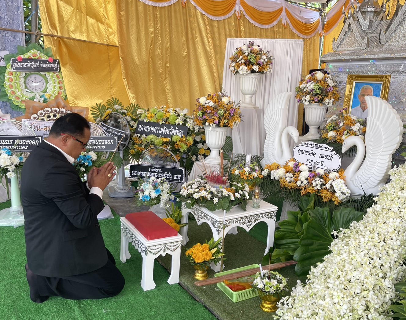 วันที่ ๑๔ มีนาคม ๒๕๖๖ ดร.ศักดิ์สิทธิ์ แร่ทอง ผู้อำนวยการสำนักงานเขตพื้นที่การศึกษาประถมศึกษาชุมพร เขต ๑ (ประธานกองทุนชาตะสัมพันธ์ สพป.ชุมพร เขต ๑) ร่วมเคารพศพนายคิด เพชรดี บิดาของ นายจรัล เพชรดี ผู้อำนวยการโรงเรียนชุมชนวัดหาดพันไกร พร้อมมอบเงินกองทุนชาตะสัมพันธ์ สพป.ชุมพร เขต ๑ ให้กับครอบครัวผู้เสียชีวิต โดยมีผู้บริหารสถานศึกษาในเครือข่ายสถานศึกษาเมือง 3 ร่วมมอบเงินทำบุญ ณ บ้านเลขที่ ๔๘ หมู่ที่ ๑๐ (บ้านควนสีเมือง) ตำบลร่อนพิบูลย์ อำเภอร่อนพิบูลย์ จังหวัดนครศรีธรรมราช.