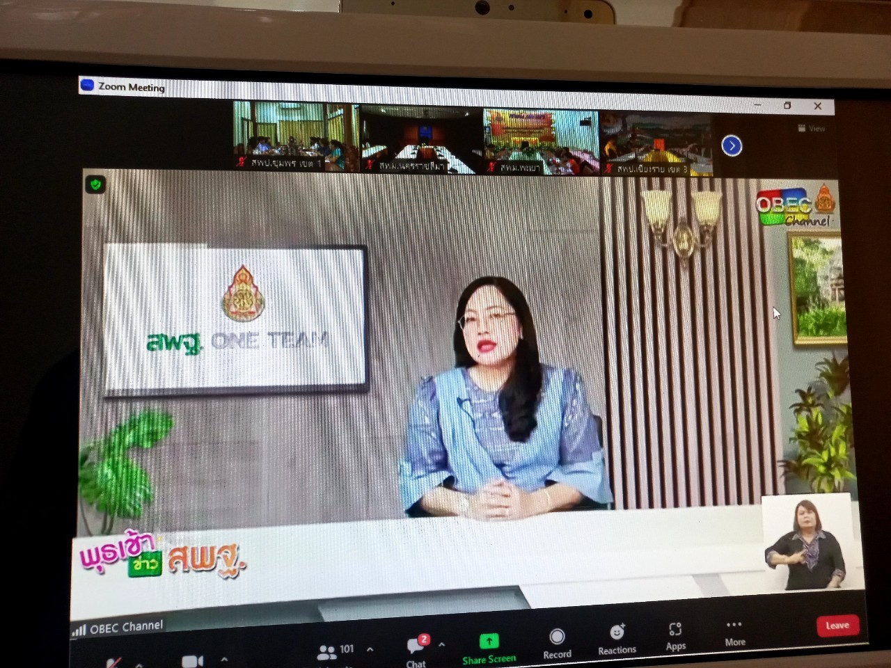 วันพุธที่ 22 มีนาคม 2566 เวลา 08.00 น. ดร.ศักดิ์สิทธิ์ แร่ทอง ผู้อำนวยการสำนักงานเขตพื้นที่การศึกษาประถมศึกษาชุมพร เขต 1 มอบหมายให้ นางวรมาศ ศรีประจันต์ ผอ.กลุ่มพัฒนาครูและบุคลากรทางการศึกษา พร้อมด้วยผู้อำนวยการกลุ่ม/หน่วยและผู้เกี่ยวข้อง ร่วมรับชมรายการ "พุธเช้า ข่าว สพฐ." ครั้งที่ 12/2566 เพื่อรับฟังการดำเนินงานนโยบายข้อมูลข่าวสารการจัดการศึกษาและนำนโยบายสู่การปฏิบัติอย่างเป็นรูปธรรมจากสำนักงานคณะกรรมการการศึกษาขั้นพื้นฐาน หลังการประชุมพุธเช้าข่าว สพฐ. ผอ.กลุ่ม/หน่วย ได้พบปะพูดคุย เพื่อแจ้งภารกิจงานของกลุ่มที่ต้องร่วมกันดำเนินการ เพื่อให้การดำเนินการขับเคลื่อนงานของสำนักงานเขตฯ เป็นไปอย่างต่อเนื่อง บรรลุตามเป้าหมาย ณ ห้องประชุมเขาปูน อาคารสโมสร สำนักงานเขตพื้นที่การศึกษาประถมศึกษาชุมพร เขต 1