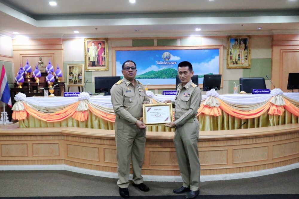 วันที่ 30 มีนาคม 2566 เวลา 08.30 น. ที่ห้องประชุมเกาะเสม็ด ชั้น 4 ศาลากลางจังหวัดชุมพร ดร.ศักดิ์สิทธิ์ แร่ทอง ผู้อำนวยการสำนักงานเขตพื้นที่การศึกษาประถมศึกษาชุมพร เขต 1 เข้ารับเกียรติบัตรโครงการ TO BE NUMBER ONE จากนายวิสาห์ พูลศิริรัตน์ ผู้ว่าราชการจังหวัดชุมพร ในฐานะหน่วยงานผู้สนับสนุนการดำเนินงานโครงการ TO BE NUMBER ONE ประจำปี 2565
