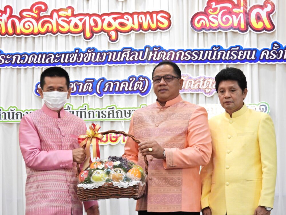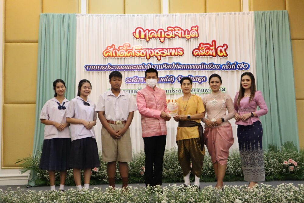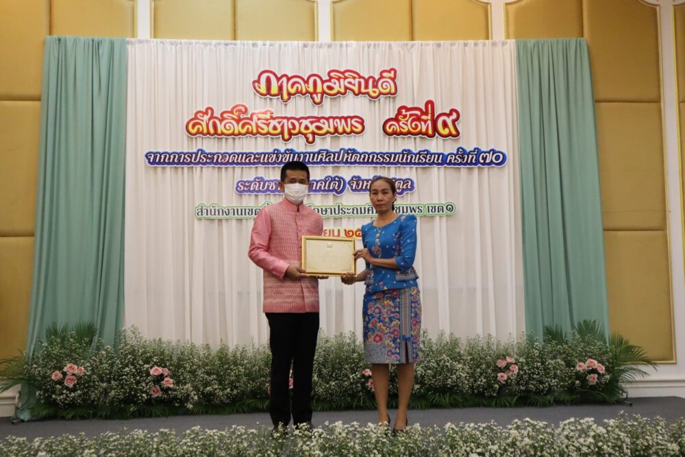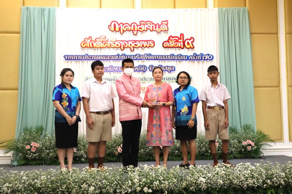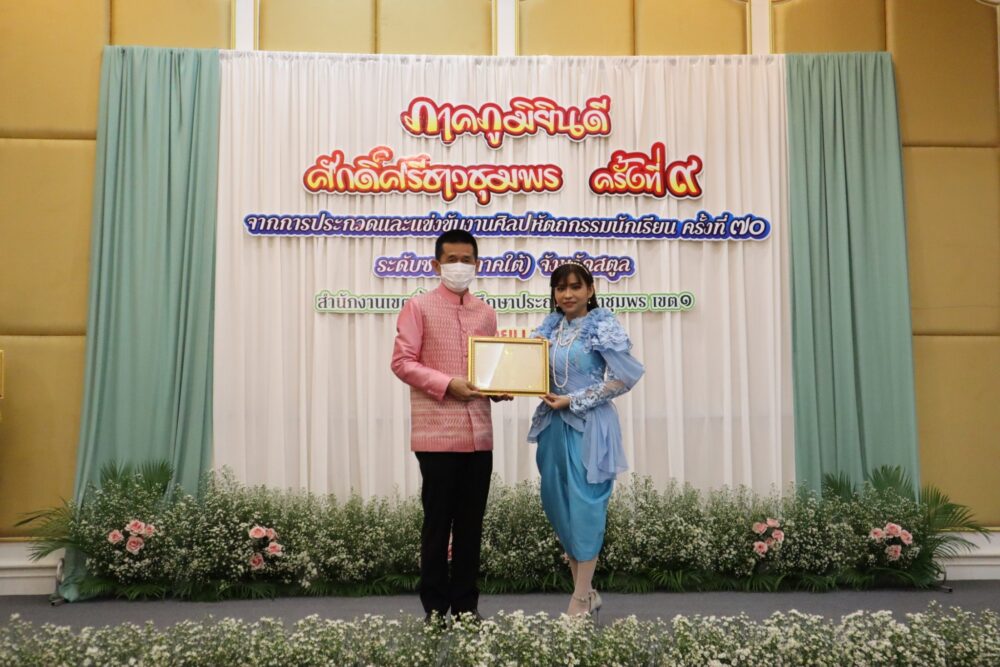วันที่ 4 เมษายน 2566 เวลา 08.30 น. ณ โรงแรมมรกตทวินชุมพร อำเภอเมืองชุมพร จังหวัดชุมพร สำนักงานเขตพื้นที่การศึกษาประถมศึกษาชุมพร เขต 1 จัดกิจกรรม "ภาคภูมิ…ยินดี ศักดิ์ศรีชาวชุมพร ครั้งที่ 9" โดย นายวิสาห์ พูลศิริรัตน์ ผู้ว่าราชการจังหวัดชุมพร เป็นประธานเปิดกิจกรรม พร้อมมอบโล่และเกียรติบัตรแก่ผู้ที่ได้รับรางวัลระดับชาติ ในการประกวดและแข่งขันงานศิลปหัตถกรรมนักเรียน ครั้งที่ 70 ปีการศึกษา 2565 ระดับชาติ (ภาคใต้) ณ จังหวัดสตูล ที่ผ่านมา… โดยมี ดร.ศักดิ์สิทธิ์ แร่ทอง ผู้อำนวยการสำนักงานเขตพื้นที่การศึกษาประถมศึกษาชุมพร เขต 1 กล่าวรายงาน ซึ่งกิจกรรมที่จัดขึ้นในวันนี้ เพื่อแลกเปลี่ยนเรียนรู้ด้านวิชาการ และเพื่อนำเสนอความสำเร็จของนักเรียนที่เข้าประกวดและแข่งขันงานศิลปหัตถกรรมนักเรียน ครั้งที่ 70 ปีการศึกษา 2565 ระดับชาติ (ภาคใต้) จังหวัดสตูล ซึ่งมีคะแนนรวมระดับชาติ (ภาคใต้) ลำดับจำนวนเหรียญทองรวม อยู่ในลำดับที่ 2 และลำดับรางวัลชนะเลิศอยู่ในลำดับที่ 6 จากสำนักงานเขตพื้นที่การศึกษาประถมศึกษา จำนวน 30 เขต โดยมีผู้บริหารโรงเรียน ครู นักเรียน บุคลากรทางการศึกษา และผู้เกี่ยวข้อง เข้าร่วมงาน จำนวน 200 คน
