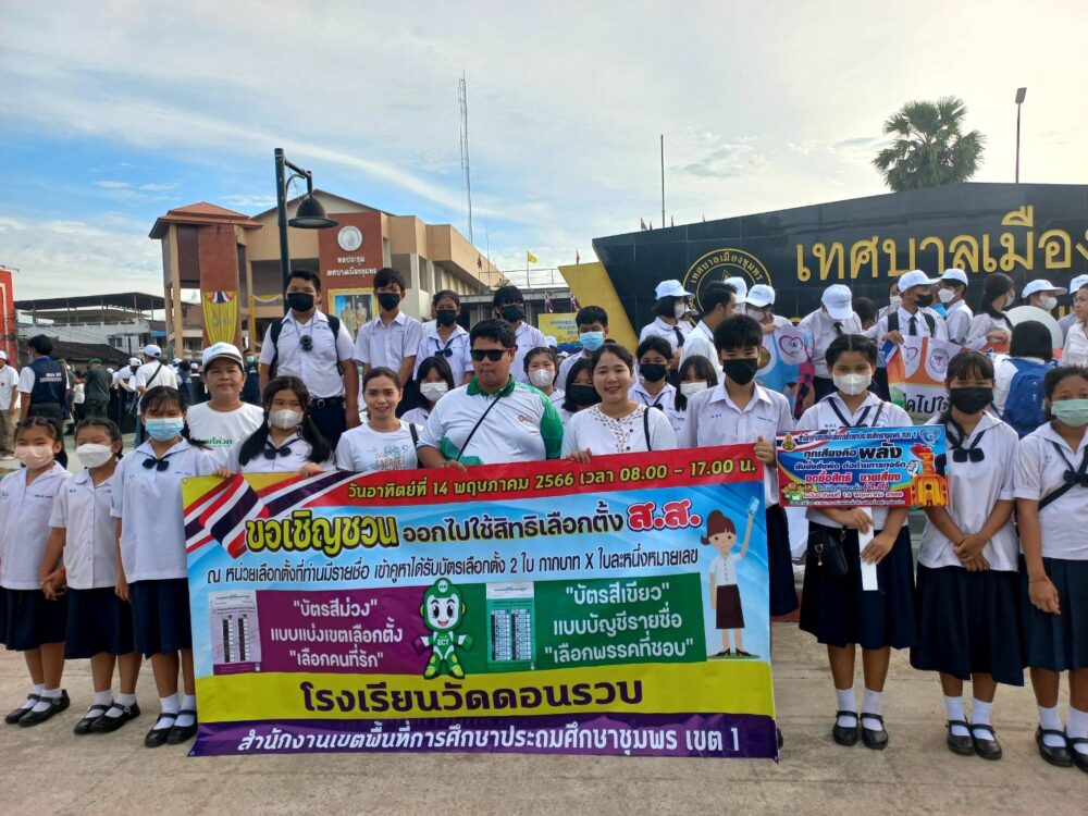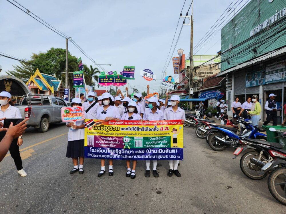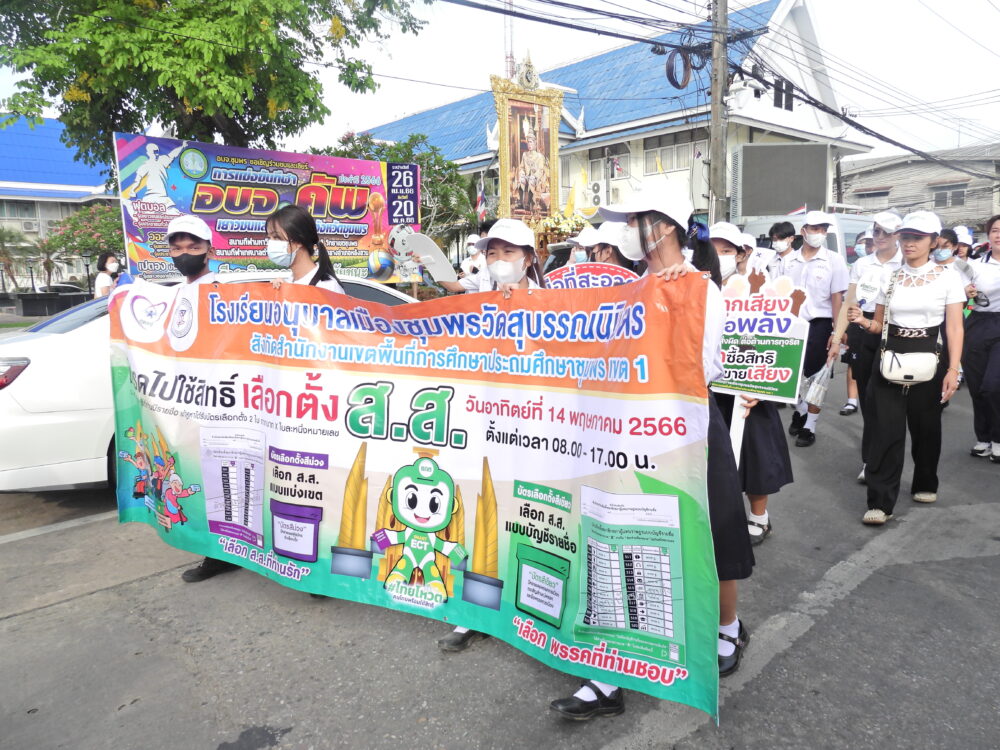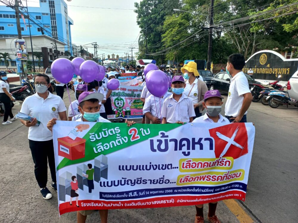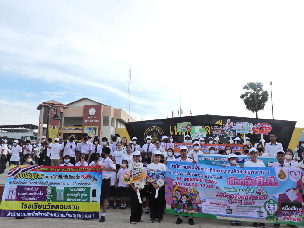 สพป.ชุมพร เขต 1 นำนักเรียนและบุคลากรทางการศึกษาร่วมกิจกรรมประชาสัมพันธ์เชิญชวนไปใช้สิทธิเลือกตั้งสมาชิกสภาผู้แทนราษฎร BIG DAY