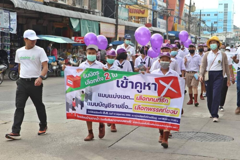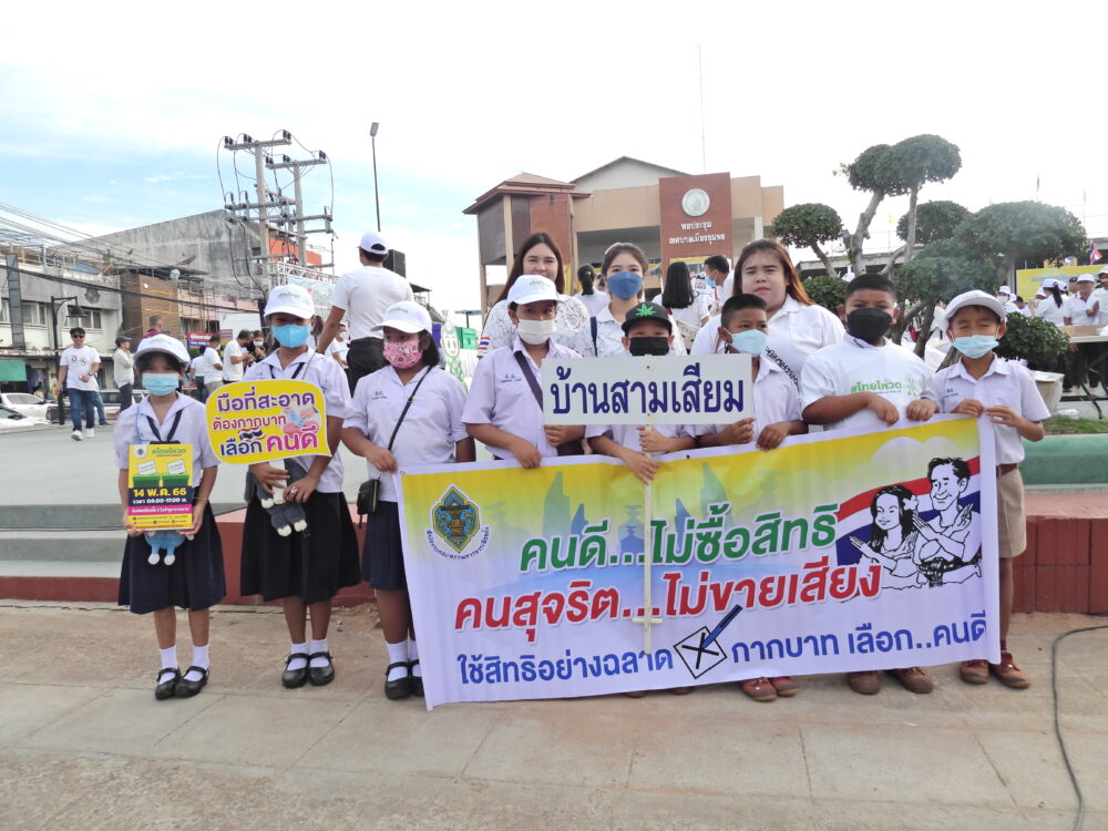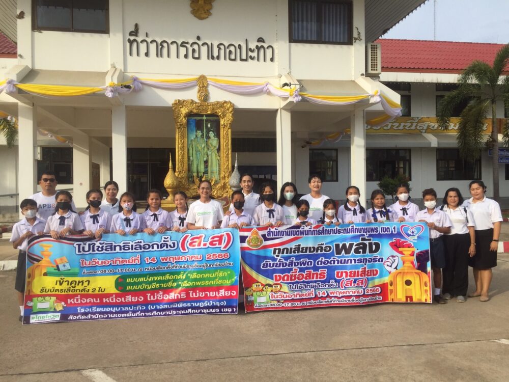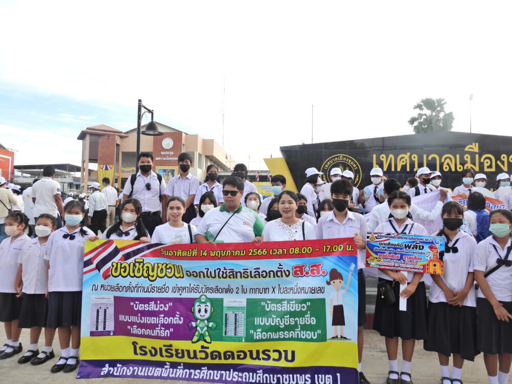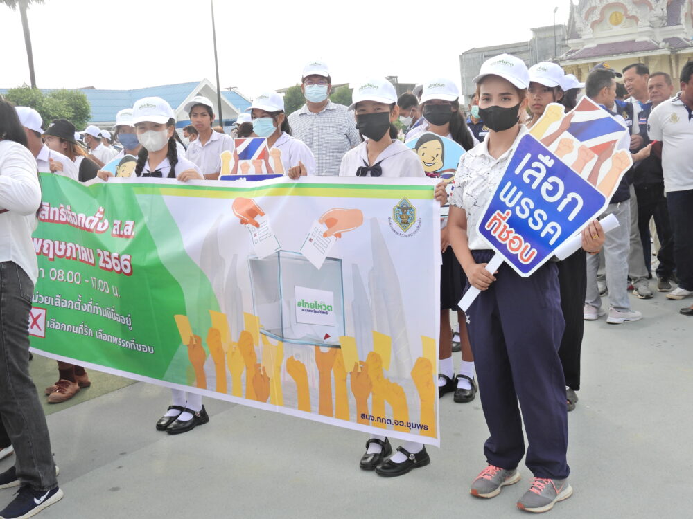 สพป.ชุมพร เขต 1 นำนักเรียนและบุคลากรทางการศึกษาร่วมกิจกรรมประชาสัมพันธ์เชิญชวนไปใช้สิทธิเลือกตั้งสมาชิกสภาผู้แทนราษฎร BIG DAY