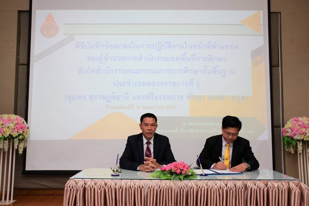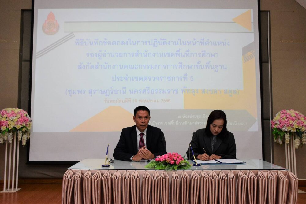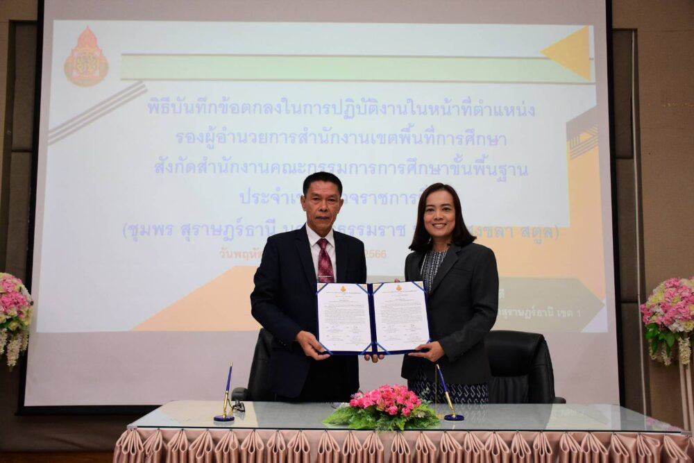 รอง ผอ.สพป.ชุมพร เขต 1 ร่วมพิธีลงนามการบันทึกข้อตกลง (MOU) การปฏิบัติงานในตำแหน่งรองผู้อำนวยการสำนักงานเขตพื้นที่การศึกษาประถมศึกษา