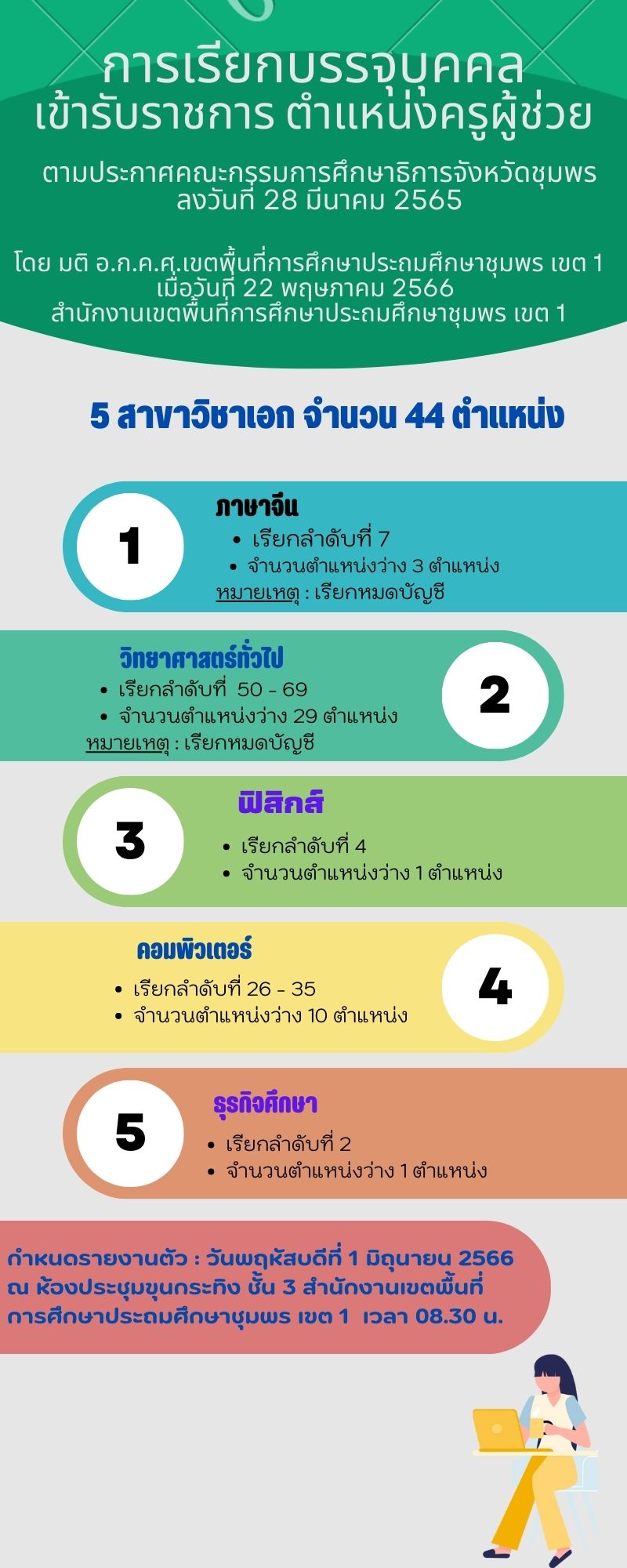 การเรียกบรรจุบุคคลเข้ารับราชการ ตำแหน่งครูผู้ช่วย 23 พฤษภาคม 256624 พฤษภาคม 2023 กลุ่มบริหารงานบุคคล สพป.ชพ.1 ข่าวและกิจกรรม สพป.ชพ.1, ประกาศขึ้นบัญชี FacebookFacebookXXLINELine กลุ่มบริหารงานบุคคล สพป.ชพ.1