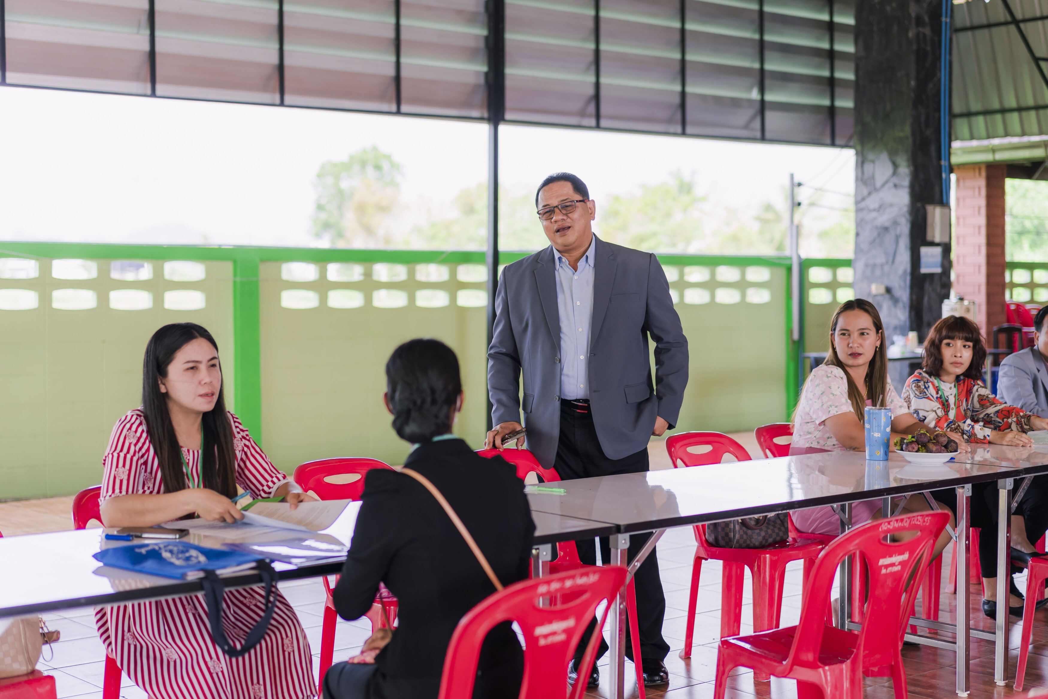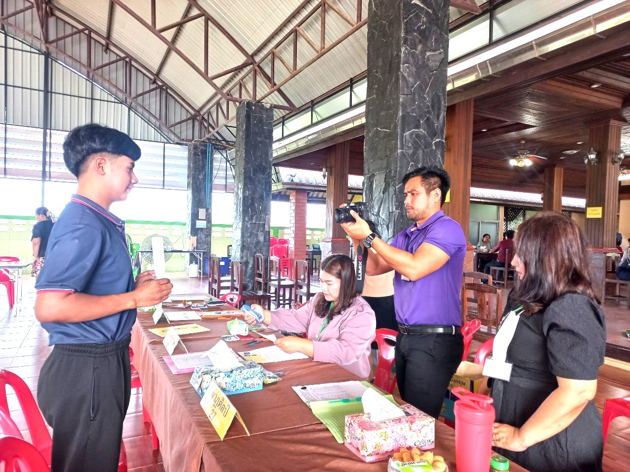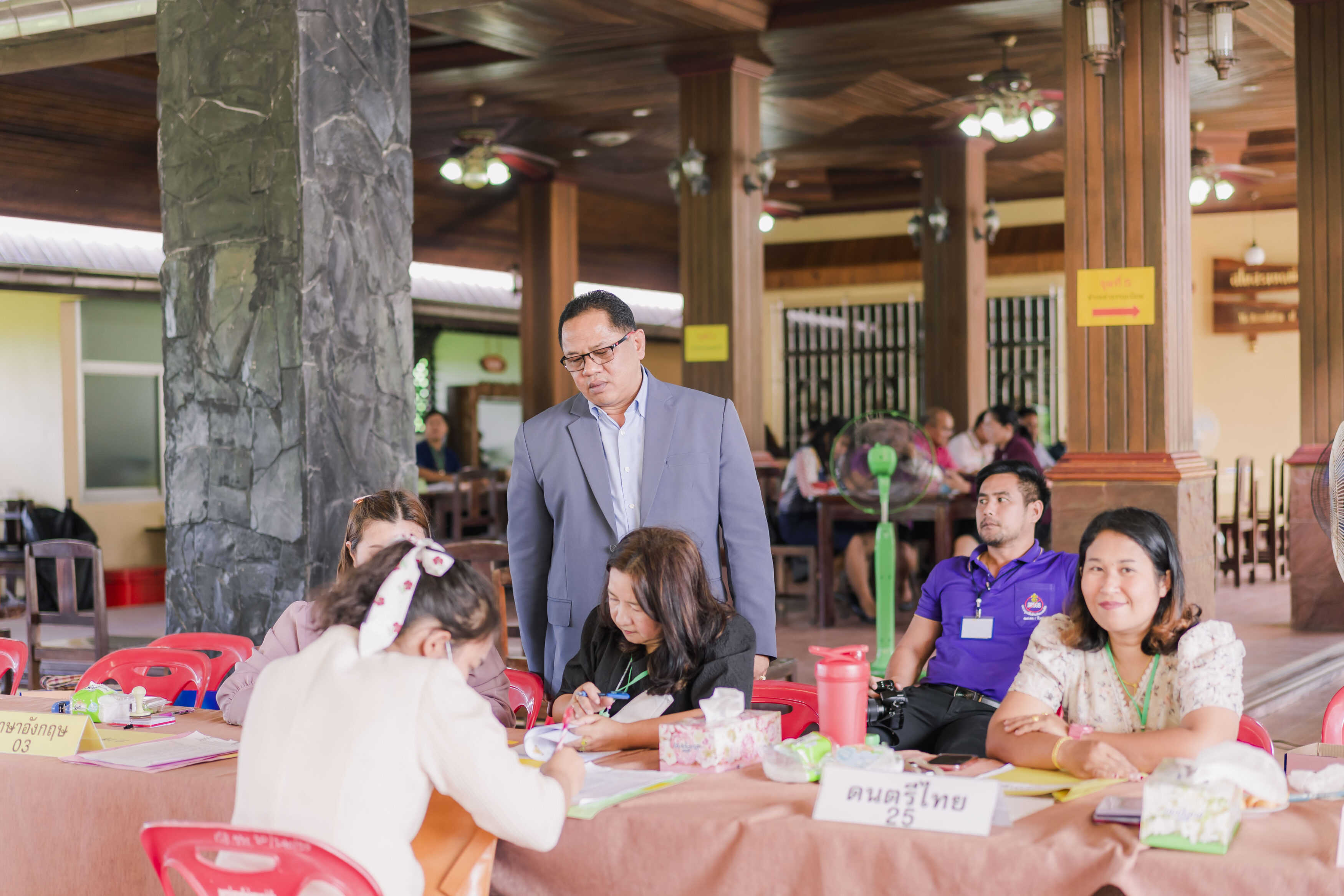 วันที่ 4 มิถุนายน 2566 ซึ่งเป็นวันที่ห้าของการรับสมัครฯ และก่อนถึงเวลาการรับสมัครในวันนี้ ดร.ศักดิ์สิทธิ์ แร่ทอง ผอ.สพป.ชุมพร เขต 1 ได้เป็นประธานประชุมคณะกรรมการฝ่ายตรวจเอกสารการสมัคร และคณะกรรมการฝ่ายตรวจสอบคุณสมบัติและคุณวุฒิ เพื่อสรุปผลการดำเนินการรับสมัครที่ผ่านมา และสอบถามปัญหาต่างๆ ที่พบเพื่อให้คำแนะนำและข้อเสนอแนะในการดำเนินการต่อไปได้อย่างถูกต้อง พร้อมทั้งได้เน้นย้ำให้ปฏิบัติหน้าที่อย่างละเอียด รอบครอบ เพื่อไม่ให้เกิดข้อผิดพลาด ทั้งนี้เพื่อประโยชน์ของผู้สมัครทุกคน หลังจากนั้น ได้พบปะ พูดคุยกับคณะกรรมการที่ปฏิบัติหน้าที่ เพื่อให้กำลังใจในการปฏิบัติหน้าที่ของคณะกรรมการ พร้อมได้สอบถามพูดคุยให้กำลังใจ และให้คำแนะนำกับผู้มาสมัคร และหลังปิดการรับสมัครในวันนี้ ได้ประชุมคณะกรรมการทุกฝ่ายที่มาปฏิบัติหน้าที่เพื่อสอบถามปัญหาต่างๆ และให้ข้อเสนอแนะในการดำเนินต่อไป โดยในวันนี้มีผู้มาสมัครทั้งสิ้น จำนวน 81 คน.-