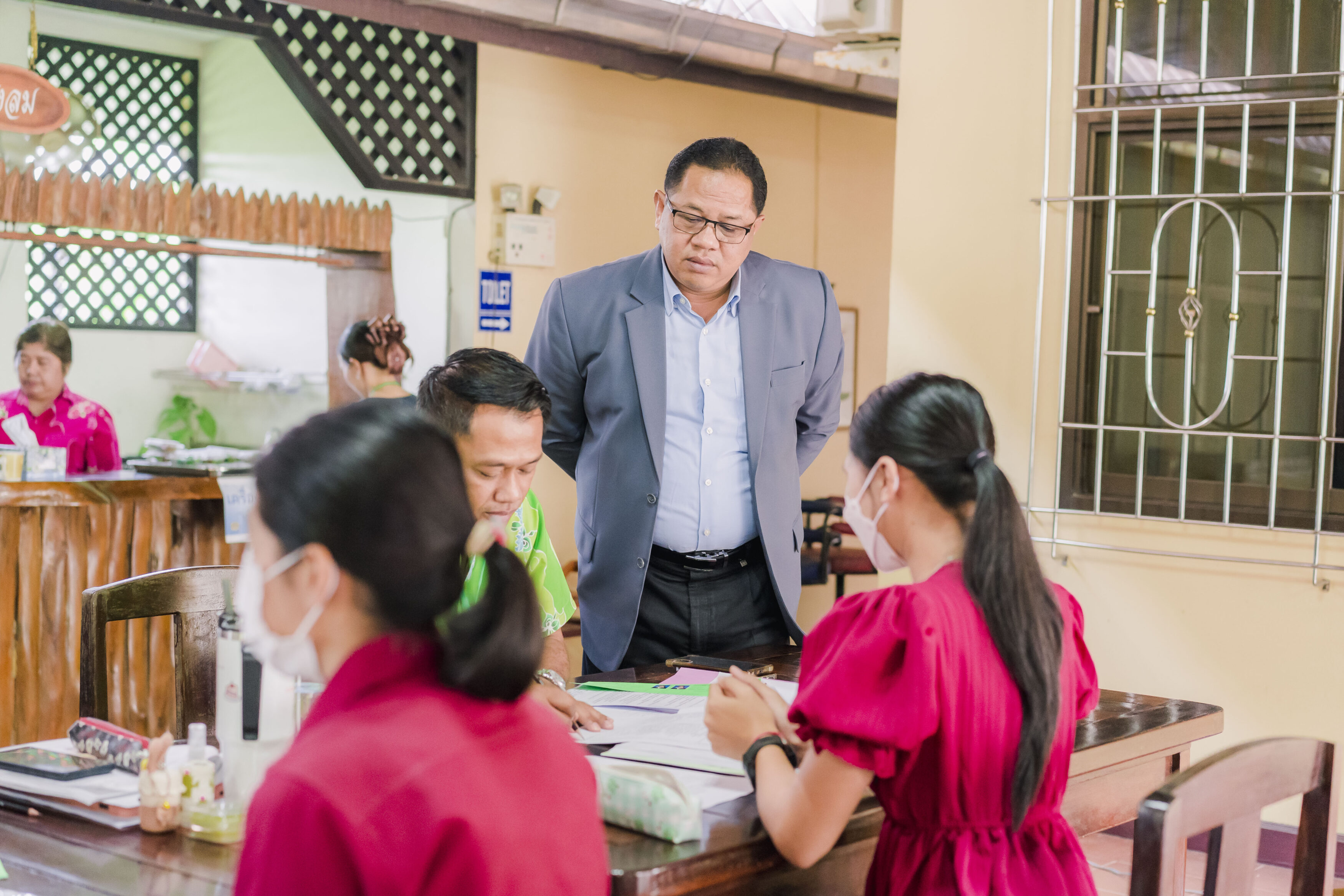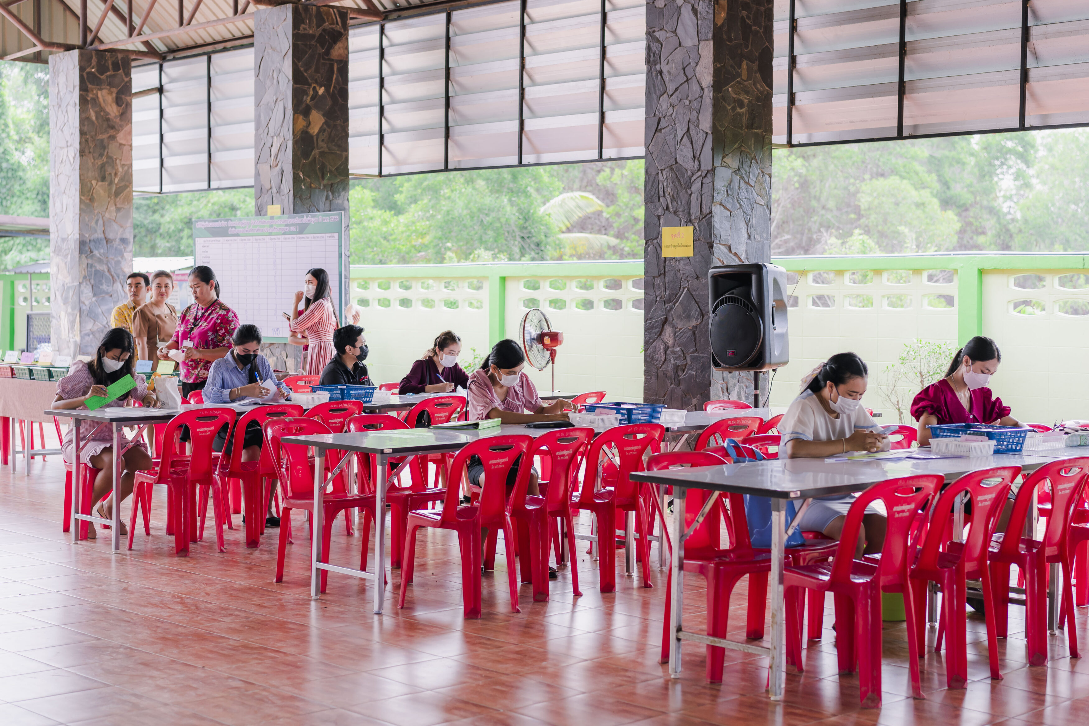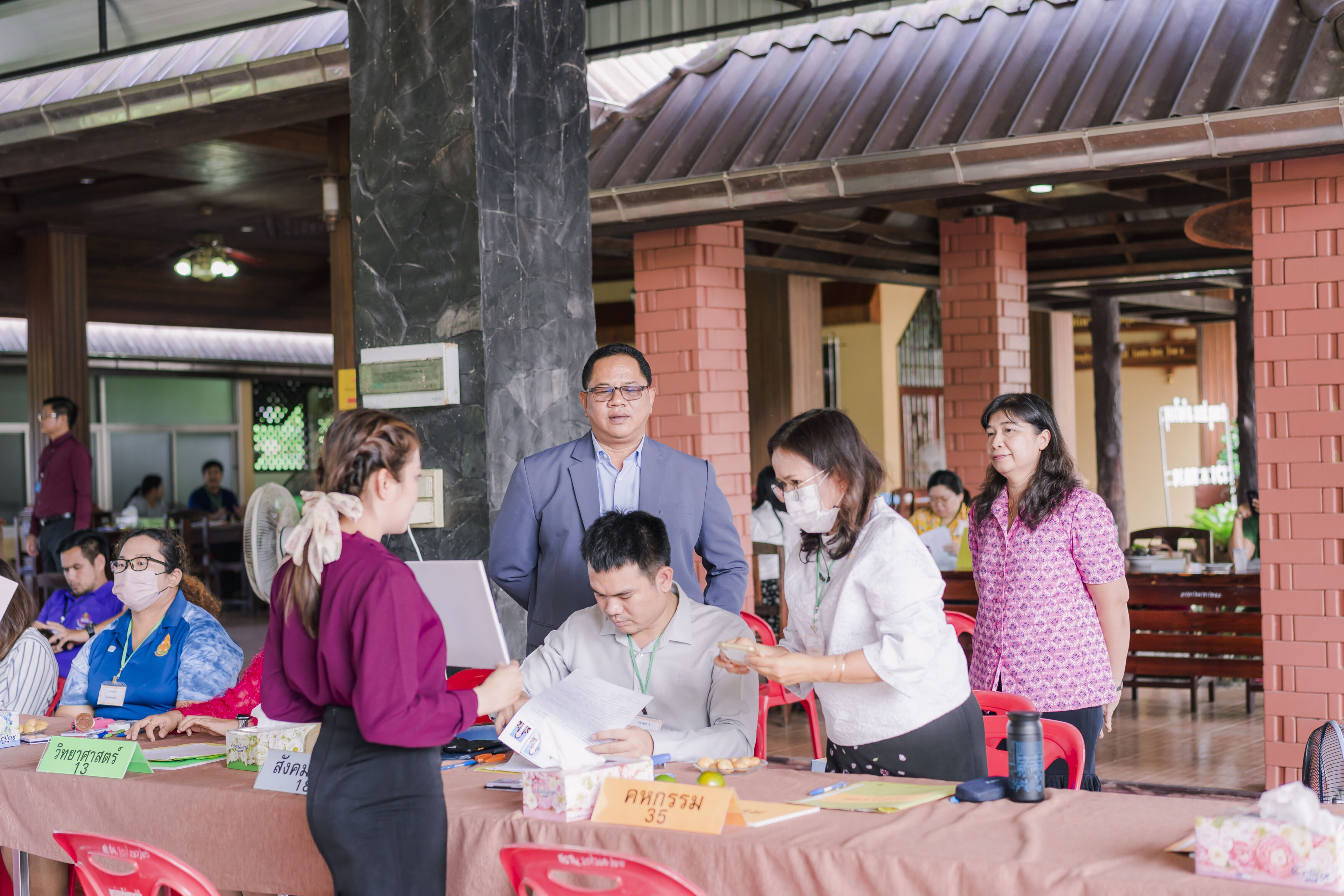 วันที่ 4 มิถุนายน 2566 ซึ่งเป็นวันที่ห้าของการรับสมัครฯ และก่อนถึงเวลาการรับสมัครในวันนี้ ดร.ศักดิ์สิทธิ์ แร่ทอง ผอ.สพป.ชุมพร เขต 1 ได้เป็นประธานประชุมคณะกรรมการฝ่ายตรวจเอกสารการสมัคร และคณะกรรมการฝ่ายตรวจสอบคุณสมบัติและคุณวุฒิ เพื่อสรุปผลการดำเนินการรับสมัครที่ผ่านมา และสอบถามปัญหาต่างๆ ที่พบเพื่อให้คำแนะนำและข้อเสนอแนะในการดำเนินการต่อไปได้อย่างถูกต้อง พร้อมทั้งได้เน้นย้ำให้ปฏิบัติหน้าที่อย่างละเอียด รอบครอบ เพื่อไม่ให้เกิดข้อผิดพลาด ทั้งนี้เพื่อประโยชน์ของผู้สมัครทุกคน หลังจากนั้น ได้พบปะ พูดคุยกับคณะกรรมการที่ปฏิบัติหน้าที่ เพื่อให้กำลังใจในการปฏิบัติหน้าที่ของคณะกรรมการ พร้อมได้สอบถามพูดคุยให้กำลังใจ และให้คำแนะนำกับผู้มาสมัคร และหลังปิดการรับสมัครในวันนี้ ได้ประชุมคณะกรรมการทุกฝ่ายที่มาปฏิบัติหน้าที่เพื่อสอบถามปัญหาต่างๆ และให้ข้อเสนอแนะในการดำเนินต่อไป โดยในวันนี้มีผู้มาสมัครทั้งสิ้น จำนวน 81 คน.-