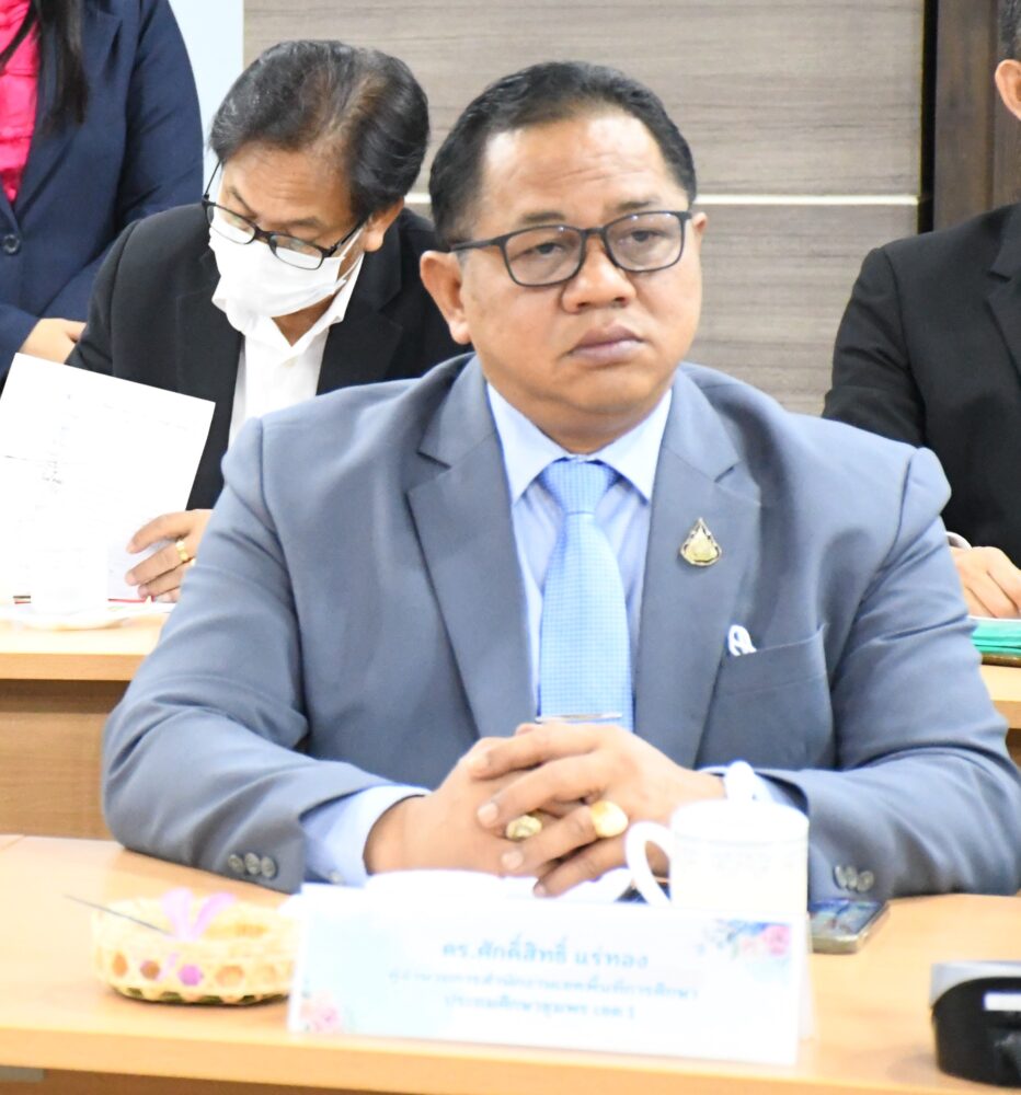 วันที่ 15 มิถุนายน 2566 เวลา 10.00 น. ณ ห้องประชุมรวงผึ้ง ชั้น 1 อาคารคณะครุศาสตร์ มหาวิทยาลัยราชภัฏสุราษฎร์ธานี ดร.ศักดิ์สิทธิ์ แร่ทอง ผู้อำนวยการสำนักงานเขตพื้นที่การศึกษาประถมศึกษาชุมพร เขต 1 เข้าร่วมประชุมเตรียมความพร้อมการดำเนินการเกี่ยวกับการออกข้อสอบ การสอบแข่งขันเพื่อบรรจุและแต่งตั้งบุคคลเข้ารับราชการเป็นข้าราชการครูและบุคลากรทางการศึกษา ตำแหน่งครูผู้ช่วย สังกัดสำนักงานคณะกรรมการศึกษาขั้นพื้นฐาน ปี พ.ศ.2566 .-