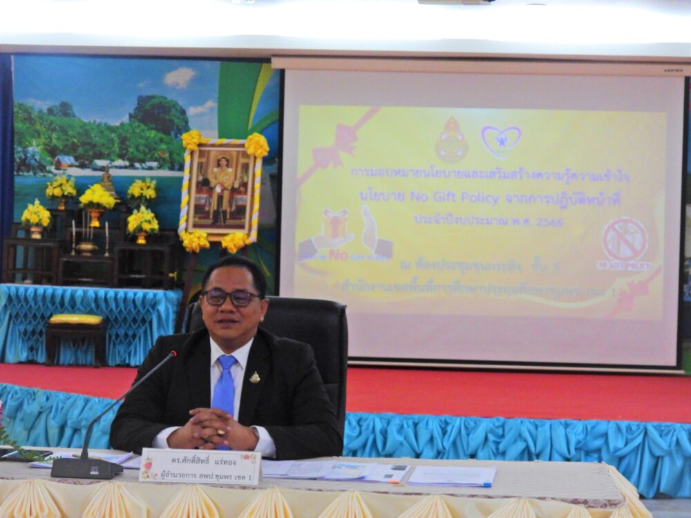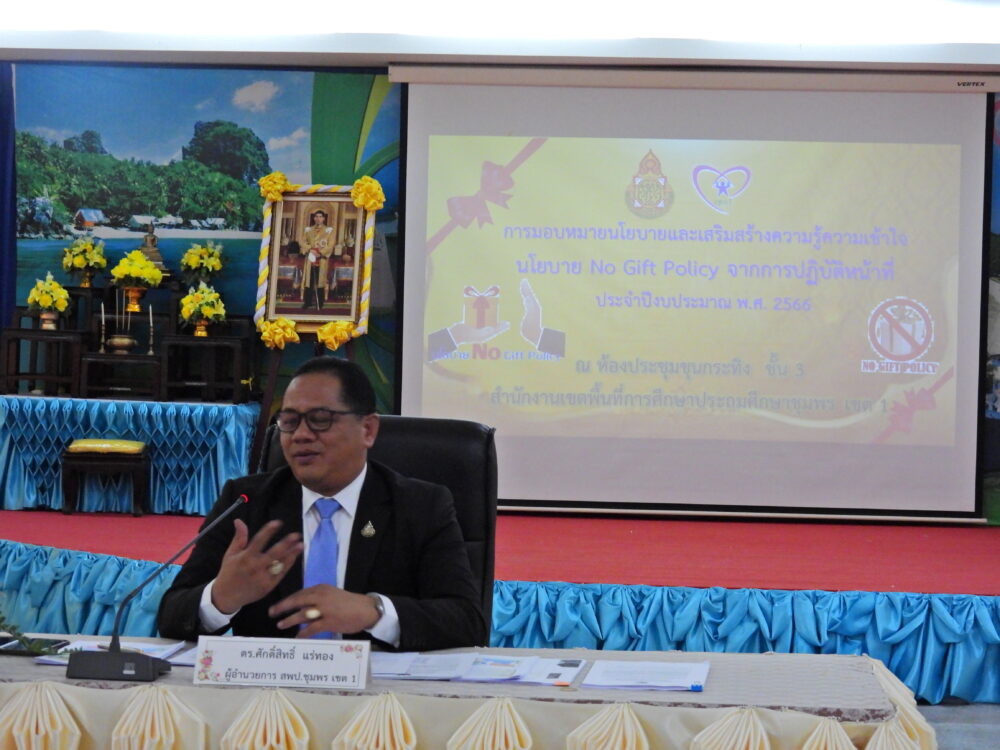 สพป.ชุมพร เขต 1 มอบนโยบายและเสริมสร้างความรู้ ความเข้าใจ นโยบาย No Gift Policy จากการปฏิบัติหน้าที่ ประจําปีงบประมาณ พ.ศ. 2566