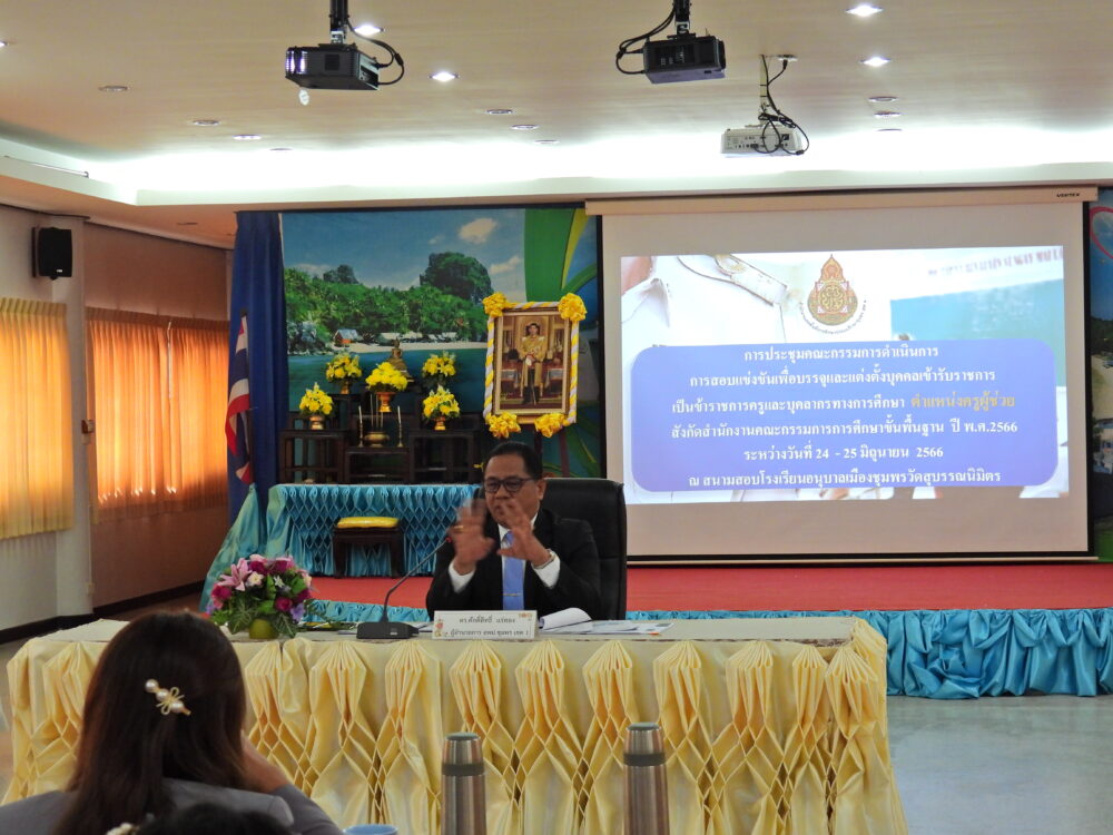 สพป.ชุมพร เขต 1 ประชุมคณะกรรมการดำเนินการเกี่ยวกับการสอบแข่งขันครูผู้ช่วย สังกัด สพฐ. ปีพ.ศ.2566 และลงพื้นที่ดูความพร้อมสนามจัดสอบ
