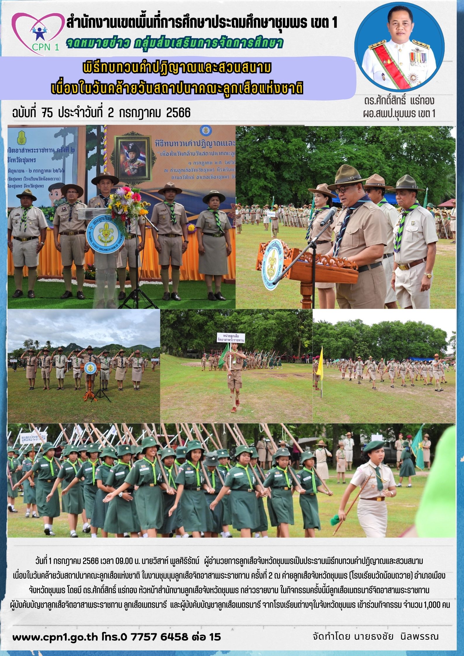 พิธีทบทวนคำปฏิญาณและสวนสนาม เนื่องในวันคล้ายวันสถาปนาคณะลูกเสือแห่งชาติ 02 กรกฎาคม 256603 กรกฎาคม 2023 กลุ่มส่งเสริมการจัดการศึกษา สพป.ชพ.1 งานส่งเสริมกิจกรรมลูกเสือ https://drive.google.com/drive/folders/1PYm-YwWi5Dmc-SNeuv9poblt29y1zu8C FacebookFacebookXXLINELine กลุ่มส่งเสริมการจัดการศึกษา สพป.ชพ.1