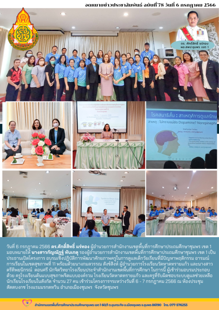วันที่ 6 กรกฎาคม 2566 ดร.ศักดิ์สิทธิ์ แร่ทอง ผู้อำนวยการสำนักงานเขตพื้นที่การศึกษาประถมศึกษาชุมพร เขต 1 มอบหมายให้