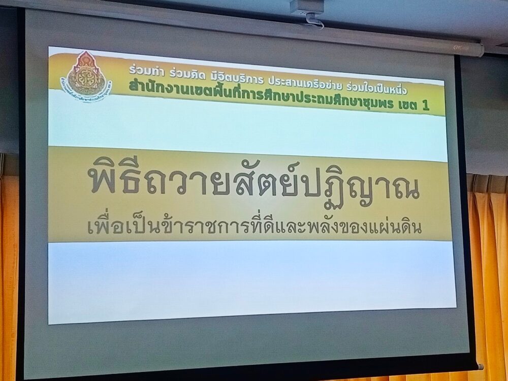 วันที่ 27 กรกฏาคม 2566 เวลา 10.00 น. ณ ห้องประชุมขุนกระทิง ๑ ชั้น ๓ สพป.ชุมพร เขต ๑ ดร.ศักดิ์สิทธิ์ แร่ทอง ผู้อำนวยการสำนักงานเขตพื้นที่การศึกษาประถมศึกษาชุมพร เขต ๑ นำข้าราชการและลูกจ้างในสำนักงานฯ ร่วมพิธีถวายสัตย์ปฏิญาณเพื่อเป็นข้าราชการที่ดีและพลังของแผ่นดินเนื่องในโอกาสวันเฉลิมพระชนมพรรษาพระบาทสมเด็จพระเจ้าอยู่หัว ๒๘ กรกฎาคม ๒๕๖๖ เพื่อแสดงความจงรักภักดีสำนึกในพระมหากรุณาธิคุณ และแสดงความมุ่งมั่นแน่วแน่ที่จะเป็นข้าราชการที่ดีและพลังของแผ่นดินปฏิบัติหน้าที่ตามรอยพระยุคลบาท ในฐานะข้าของแผ่นดินให้เกิดประโยชน์สุขแก่ประชาชนและประเทศชาติสืบไป ทั้งนี้ ได้จัดให้มีการลงนามถวายสัตย์ปฏิญาณฯ ทางระบบออนไลน์ บนเว็บไซต์สำนักงานเขตพื้นที่การศึกษาประถมศึกษาชุมพร เขต ๑