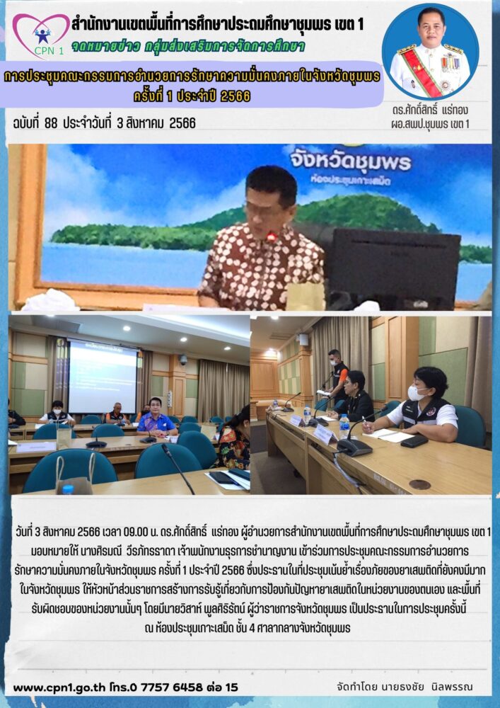 การประชุมคณะกรรมการอำนวยการรักษาความมั่นคงภายในจังหวัดชุมพร ครั้งที่ 1 ประจำปี 2566 03 สิงหาคม 2566 กลุ่มส่งเสริมการจัดการศึกษา สพป.ชพ.1 ข่าวและกิจกรรม สพป.ชพ.1, ข่าวและกิจกรรมกลุ่มส่งเสริมการจัดการศึกษา FacebookFacebookXXLINELine กลุ่มส่งเสริมการจัดการศึกษา สพป.ชพ.1