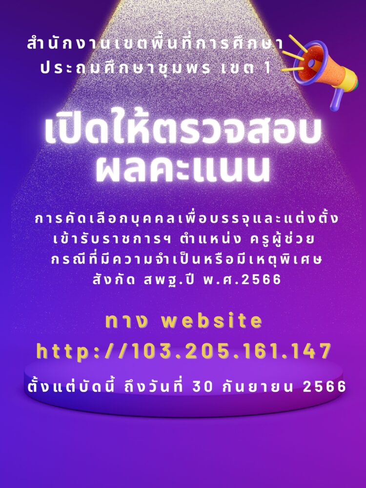 ตรวจสอบผลคะแนน การสอบครูผู้ช่วย กรณีที่มีความจำเป็นหรือมีเหตุพิเศษ ปี พ.ศ.2566 05 กันยายน 2566 กลุ่มบริหารงานบุคคล สพป.ชพ.1 ข่าวและกิจกรรม สพป.ชพ.1, ข่าวและกิจกรรมกลุ่มบริหารงานบุคคล FacebookFacebookXXLINELine กลุ่มบริหารงานบุคคล สพป.ชพ.1