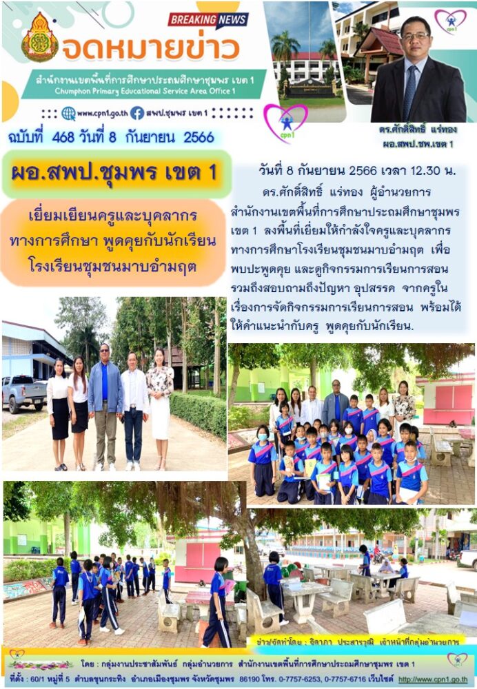 ผอ.สพป.ชุมพร เขต 1 เยี่ยมเยียนครูและบุคลากรทางการศึกษา พูดคุยกับนักเรียน โรงเรียนชุมชนมาบอำมฤต