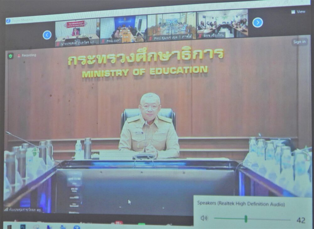 >>.. ดร.ศักดิ์สิทธิ์ แร่ทอง ผู้อำนวยการสำนักงานเขตพื้นที่การศึกษาประถมศึกษาชุมพร เขต 1 พร้อมด้วย นายเสรี พรหมฤทธิ์, นายสุพรมแดน ประทุมเมศ, นางสาวกัญณัฏฐ์ ทับเกตุ รองผู้อำนวยการสำนักงานเขตพื้นที่การศึกษาประถมศึกษาชุมพร เขต 1 และผู้อำนวยการกลุ่ม/หน่วย เข้าร่วมประชุมรับฟังการมอบนโยบายการศึกษา และแนวทางการขับเคลื่อนนโยบาย "เรียนดี มีความสุข" โดย พลตำรวจเอก เพิ่มพูน ชิดชอบ รัฐมนตรีว่าการกระทรวงศึกษาธิการ ผ่านสื่ออิเล็กทรอนิกส์ จากห้องประชุมราชวัลลภ ชั้น 2 อาคารราชวัลลภ กระทรวงศึกษาธิการ