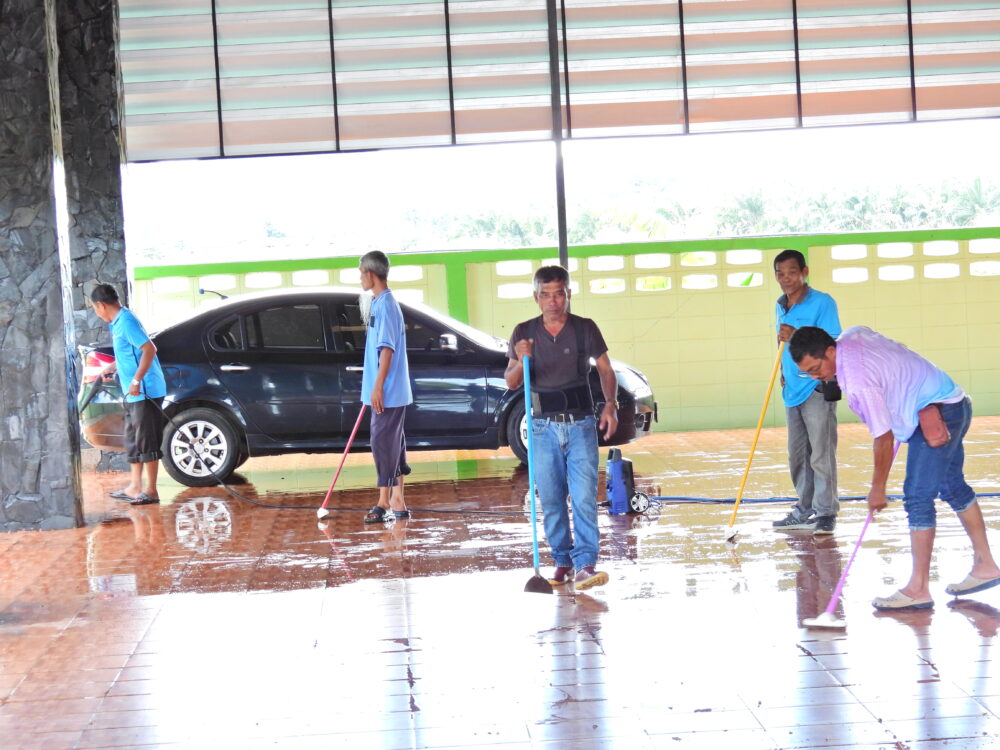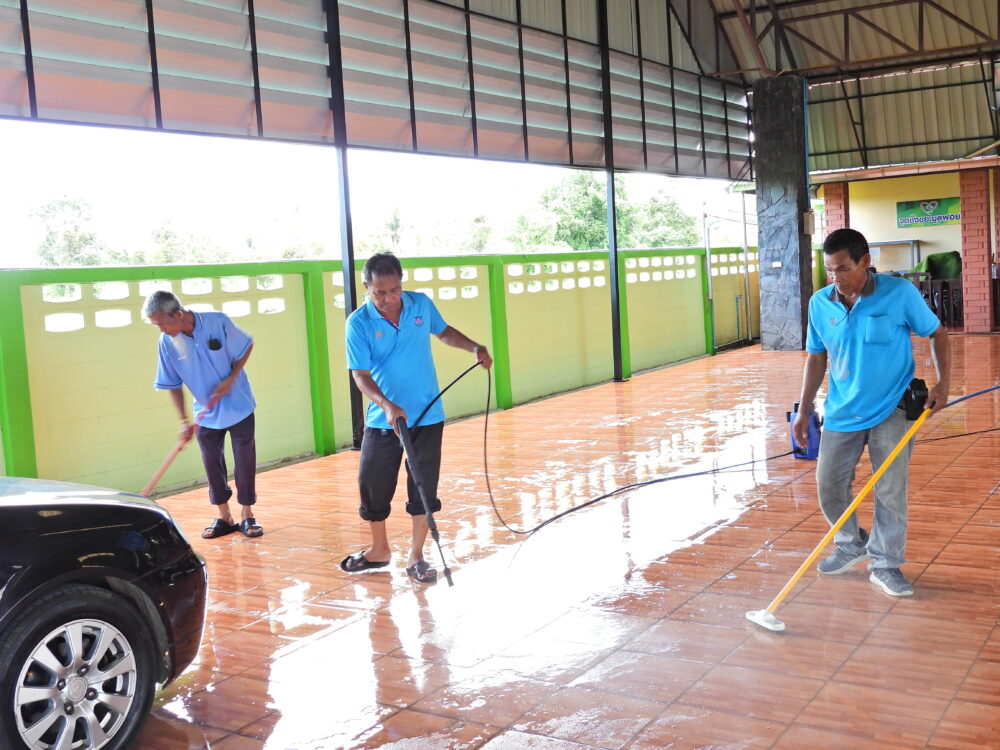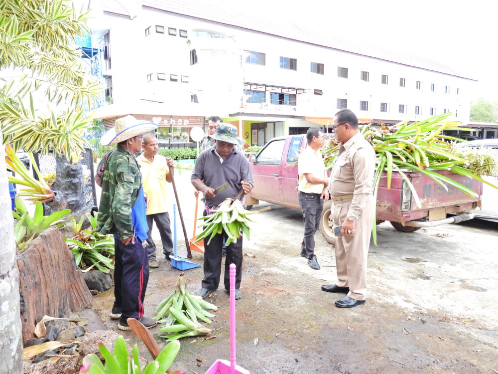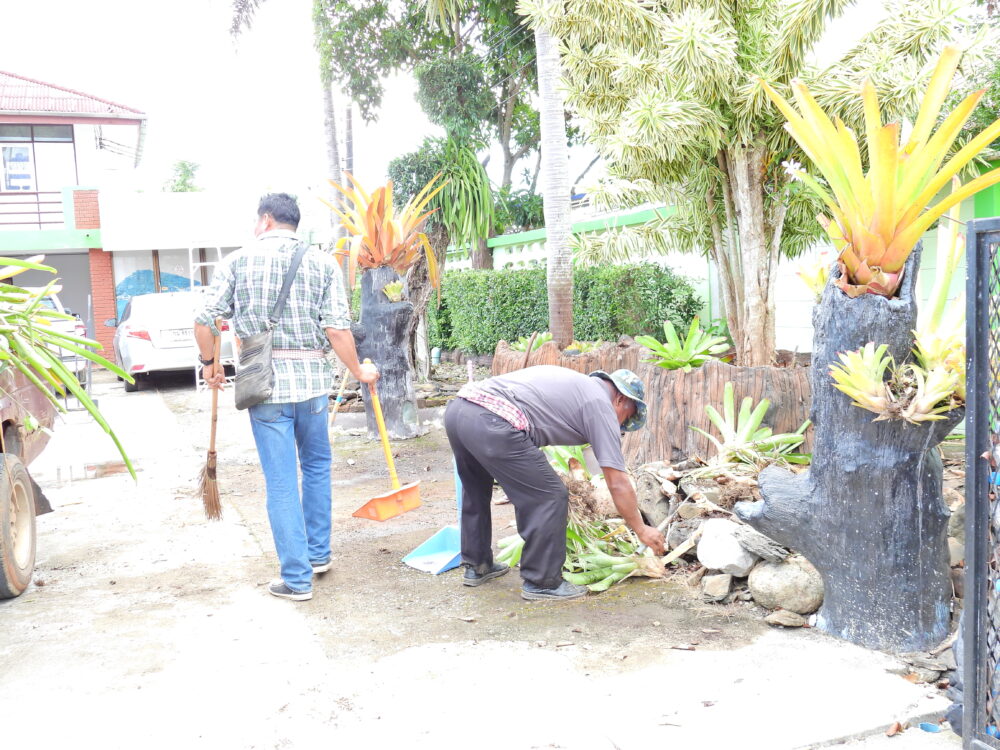 ผอ.สพป.ชุมพร เขต 1 พบปะพูดคุยให้กำลังใจกับนักการภารโรงในการปรับปรุงภูมิทัศน์บริเวณโดยรอบ สพป.ชุมพร เขต 1