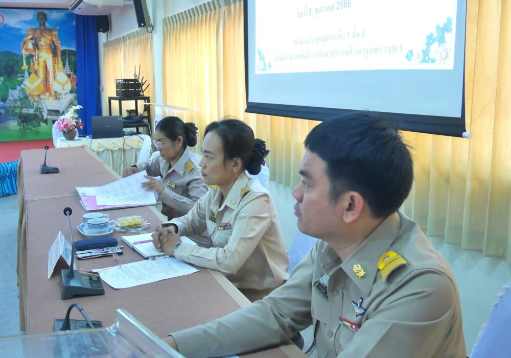 วันที่ 9 ตุลาคม 2566 เวลา 09.00 น. ดร.ศักดิ์สิทธิ์ แร่ทอง ผู้อำนวยการสำนักงานเขตพื้นที่การศึกษาประถมศึกษาชุมพร เขต 1 เป็นประธานปฐมนิเทศและกล่าวต้อนรับนักศึกษาปริญญาโท สาขาวิชาการบริหารการศึกษา จากมหาวิทยาลัยราชภัฏบ้านสมเด็จเจ้าพระยา จำนวน 32 คน ซึ่งฝึกประสบการณ์วิชาชีพ ระหว่างวันที่ 9 – 18 ตุลาคม 2566 โดยมีวัตถุประสงค์ เพื่อฝึกประสบการณ์ และเพิ่มพูนทักษะการปฏิบัติงานวิชาชีพทางการบริหารทางการศึกษา สามารถนำความรู้และประสบการณ์ที่ได้รับไปปรับใช้ได้อย่างมีประสิทธิภาพ โดยมี นางสาวกัญณัฏฐ์ ทับเกตุ รองผู้อำนวยการสำนักงานเขตพื้นที่การศึกษาประถมศึกษาชุมพร เขต 1 ซึ่งเป็นผู้บริหารพี่เลี้ยง ร่วมชี้แจงรายละเอียดขอบข่ายภาระกิจงานของ สพป.ชุมพร เขต 1 และภารกิจงานกลุ่ม/หน่วยของสำนักงานเขต และผู้อำนวยการกลุ่ม/หน่วย ร่วมให้การต้อนรับนักศึกษาปริญญาโทในการฝึกปฏิบัติการวิชาชีพบริหารการศึกษาในครั้งนี้ ณ ห้องประชุมขุนกระทิง 1 สพป.ชุมพร เขต 1